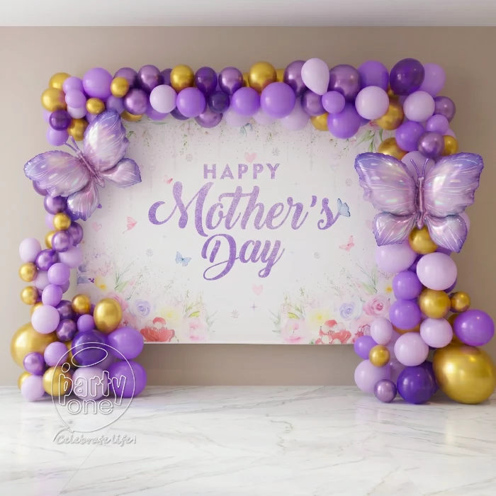 • Balloon colour combination (Purple, Lavender, Lilac & gold chrome) (customizable as customer preferred)
