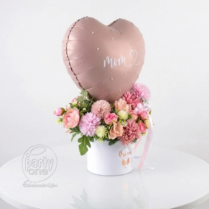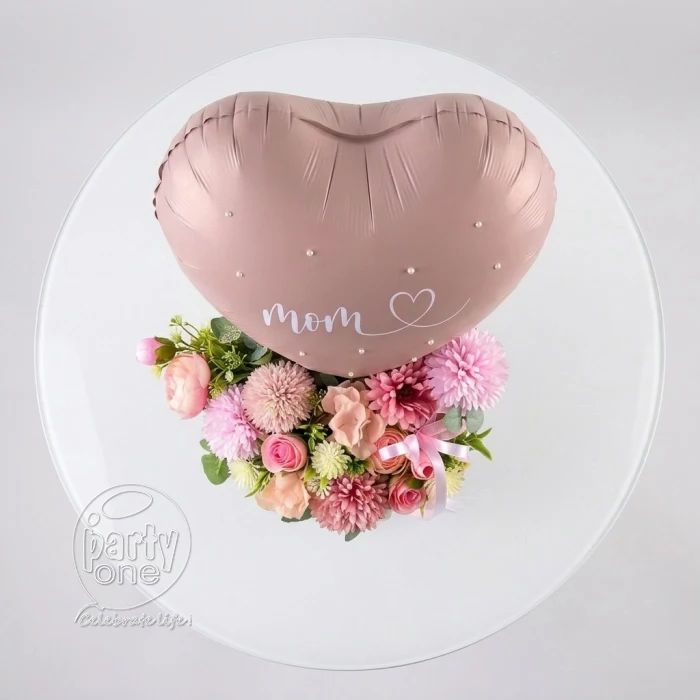 • 1 Large “Mom” Heart-Shaped Foil Balloon (Rose Gold / Blush Pink)