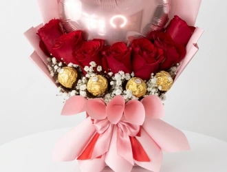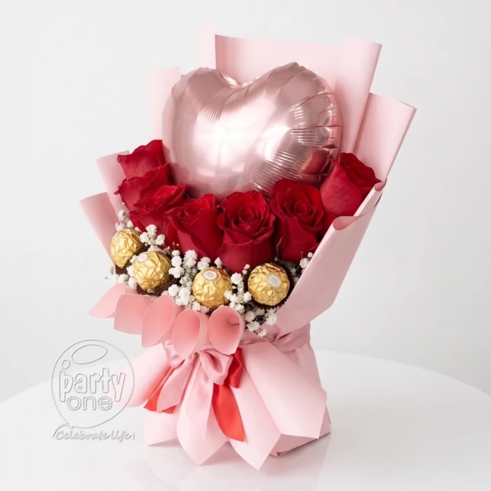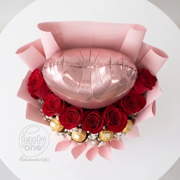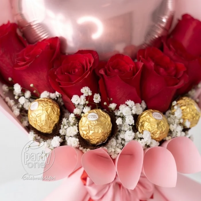 Red Rose and Foil Balloon Bouquet in Ahmedabad