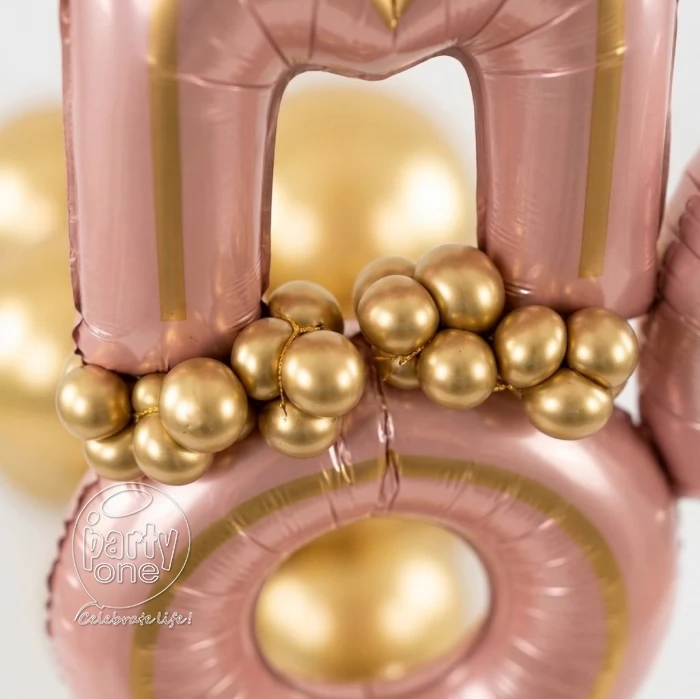 • 2 Small Gold Balloon Accent Clusters Around Letters – Approx. 20 Mini Balloons
