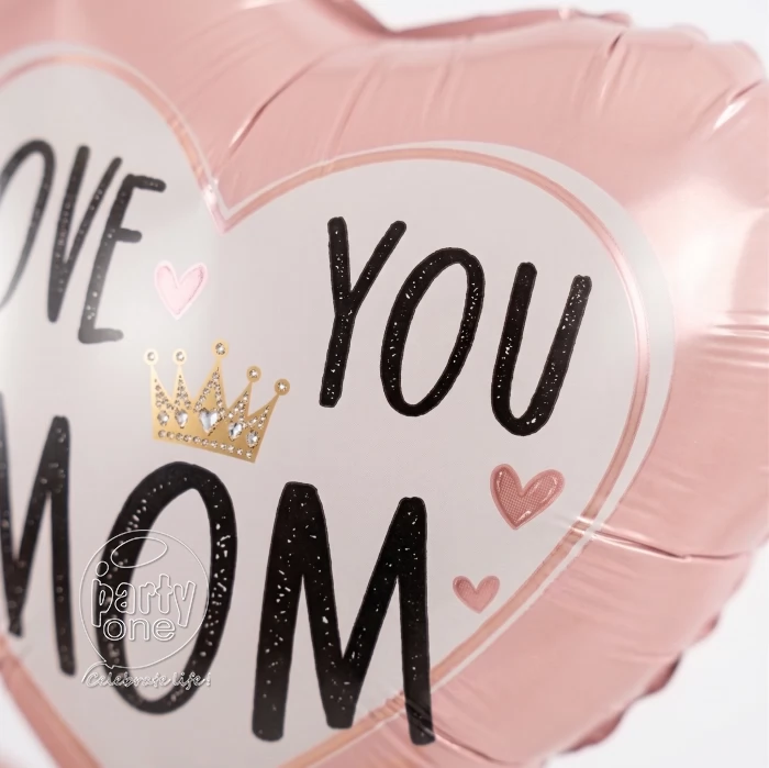 • 1 Heart-Shaped “Love You Mom” Foil Balloon