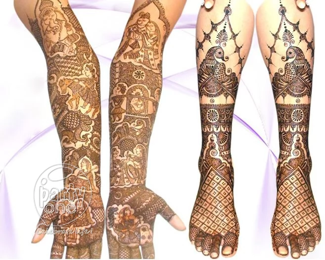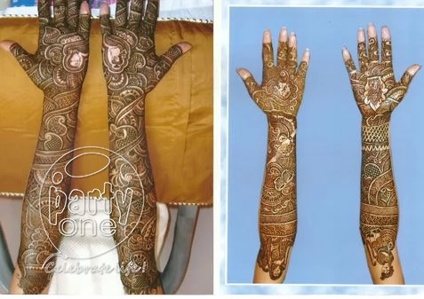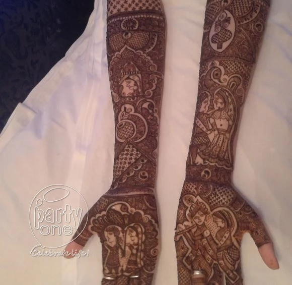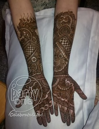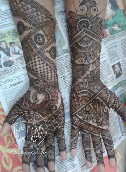 Mehandi is the event that marks the beginning of a wedding ceremony. A bridal look is incomplete without wedding mehandi. It’s an occasion that all the girls and women in the family look forward to. Although their hands are practically unusable for a few hours, the women never complain. We, at PartyOne have assembled professional bridal mehandi design artists in Bangalore with over a decade of experience who will design customized and simple mehandi patterns for the bride. With their expert hands and focused mind, they can design any concept you want them to (even hide an encrypted message in the bride’s wedding mehandi for the groom to decipher).