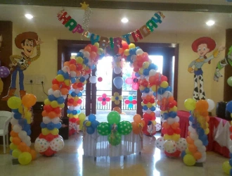 PartyOne is one of the best birthday event organizers. We do balloon decorations, stage decorations, car entry for kids, engaging activities like magic performance, game host, caricature, hair beading, 360 camera booth, live cartoon characters, mascots, and more. We provide live eateries like cotton candy, chocolate fountain, popcorn, etc. If you're planning for a budget-friendly celebration at home, then we can go with simple wall decoration at home, with a magician to engage the guests and family members. A chocolate fountain would be a go-to option for a budget-friendly setup. But if your budget is high and you're looking for a grand celebration, go with themed birthday decorations like jungle theme, Cocomelon theme, etc. Adding live cartoon characters that match the theme, with a juggler or tall man, can be the best option. Then adults' and kids' indoor activities would be the best option to engage the guests and kids. For eateries, adding popcorn, cotton candy, and chocolate fountain can be the best option. Lastly, a birthday photographer and videographer would be best to capture all the moments.