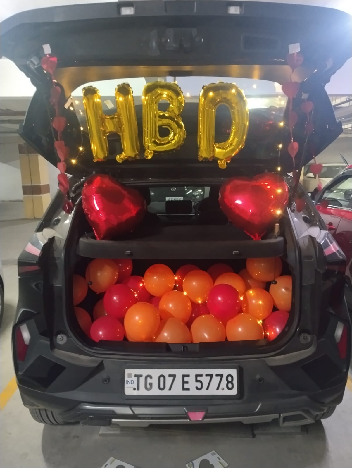 all the balloons were adjusted so we could out the car boot and surprise