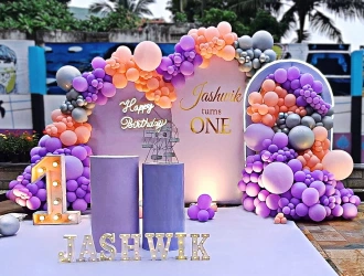 PartyOne is one of the best birthday event organizers. We do balloon decorations, stage decorations, car entry for kids, engaging activities like magic performance, game host, caricature, hair beading, 360 camera booth, live cartoon characters, mascots, and more. We provide live eateries like cotton candy, chocolate fountain, popcorn, etc. If you're planning for a budget-friendly celebration at home, then we can go with simple wall decoration at home, with a magician to engage the guests and family members. A chocolate fountain would be a go-to option for a budget-friendly setup. But if your budget is high and you're looking for a grand celebration, go with themed birthday decorations like jungle theme, Cocomelon theme, etc. Adding live cartoon characters that match the theme, with a juggler or tall man, can be the best option. Then adults' and kids' indoor activities would be the best option to engage the guests and kids. For eateries, adding popcorn, cotton candy, and chocolate fountain can be the best option. Lastly, a birthday photographer and videographer would be best to capture all the moments.