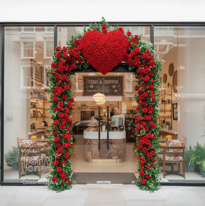 • 7*4 ft Entrance Decoration with Artificial Assorted Leaves and Red Roses