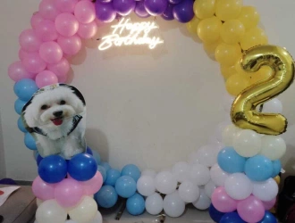 • Make your pet's birthday a fanfare with our PartyOnes' exquisite Pawty Pet Birthday Ring Decor in Faridabad! Boasting of an eye-catching 6x6 ft neon light ring and a vibrant balloon arch, your party is going to be the talk of the town, making literally every moment Instagram-worthy. No more headaches in planning a party with this all-in-one decoration! The decoration will include 200 colorful balloons, elegant balloon pillars, and a customized pet cut-out while you are free to enjoy every precious moment with your beloved companion. Make this birthday day of your pet unique with our personalized elements! Confirmation of booking, we'll design an engaging 2x2 ft cut-out with your furry friend, ensuring their persona reflects everywhere throughout the celebration and creating unforgettable photo opportunities. Set the perfect party tone with our bright pink, blue, purple, white, and yellow color palette on rings that will adorn any party plan with PartyOne! The beautiful mix of the balloons and striking neon light ring together creates a festive atmosphere that will have both pets and guests ecstatic with delight. Whether one is into a small bash or a grand bash, our PartyOnes' Pawty Pet Birthday Ring Decor puts an end to all sizes of celebrations in Faridabad! Delight your friends and family, shower love over the furry companion. this set of decor is surely going to spread smiles and wag tails!