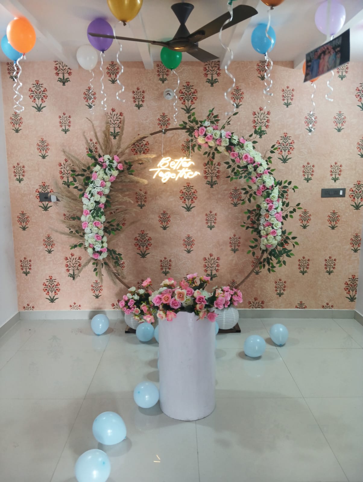 Celebrating your wedding anniversary at home can be simple, but still, you can make it a memorable and unique surprise for your partner on your anniversary. Start with simple anniversary decoration, wall decoration, ceiling balloon decoration, cabana decoration, canopy decoration. The important things that can increase the celebration to be more unique are LED lights, photo hangings, soft fabric drapes which are in light colours. Couples who love a vibrant vibe, red and white balloon decoration is a popular choice. You can opt for normal balloons or metallic accent balloons with fresh flowers to complete the decoration. Whether it’s your first or 50th anniversary decoration, what matters most is the effort you put into it. Even a small balcony or bedroom can be changed into a romantic celebration place. If you’re short on time, PartyOne’s home decorators for anniversary events can help you get the decoration into reality. Whether you’re planning for grand decoration or a minimalist approach, thoughtful room decoration for anniversary celebration can turn a simple evening into a memorable moment.