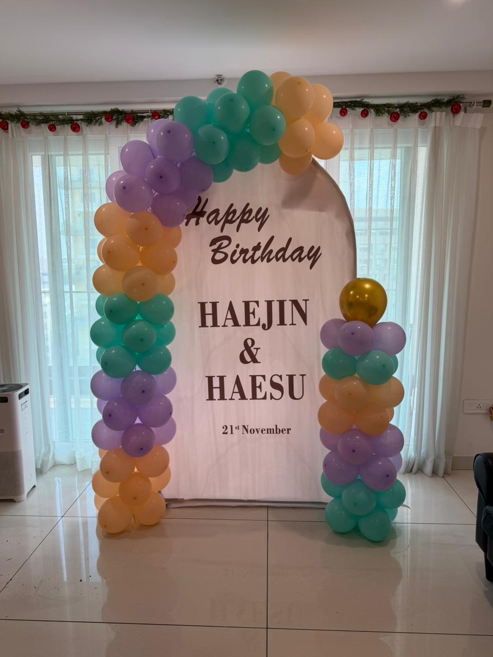 • Arch of 120 balloon(Light Purple, Light peach and Sky blue)