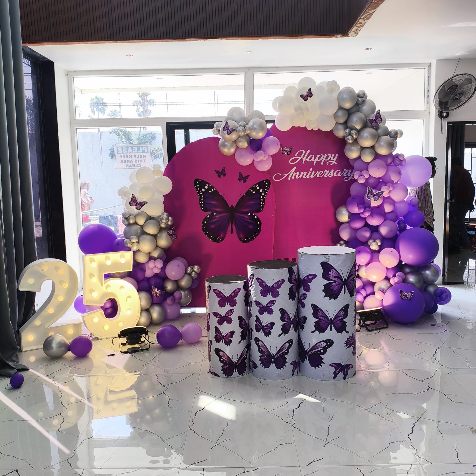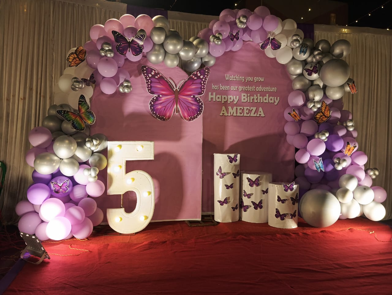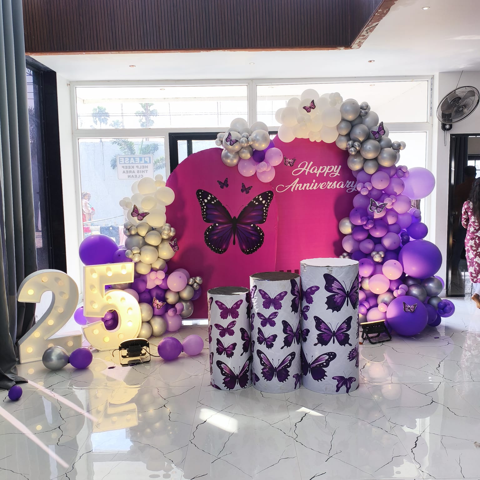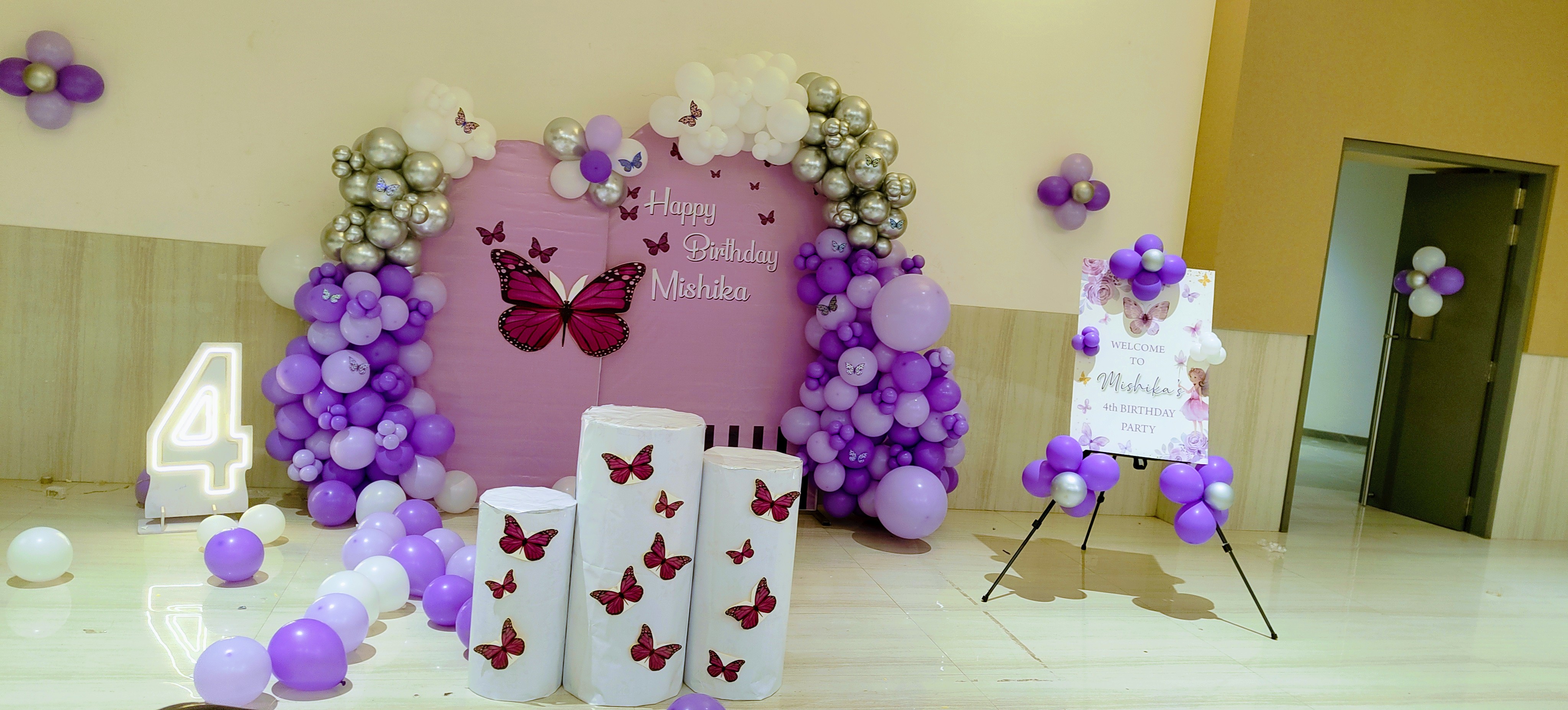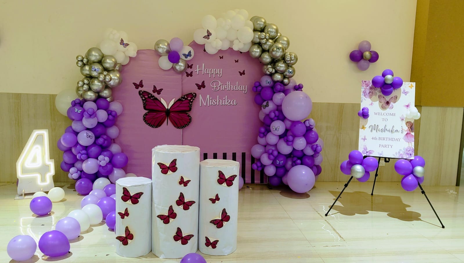 Lavender Butterfly Theme Balloon Decoration in Goa