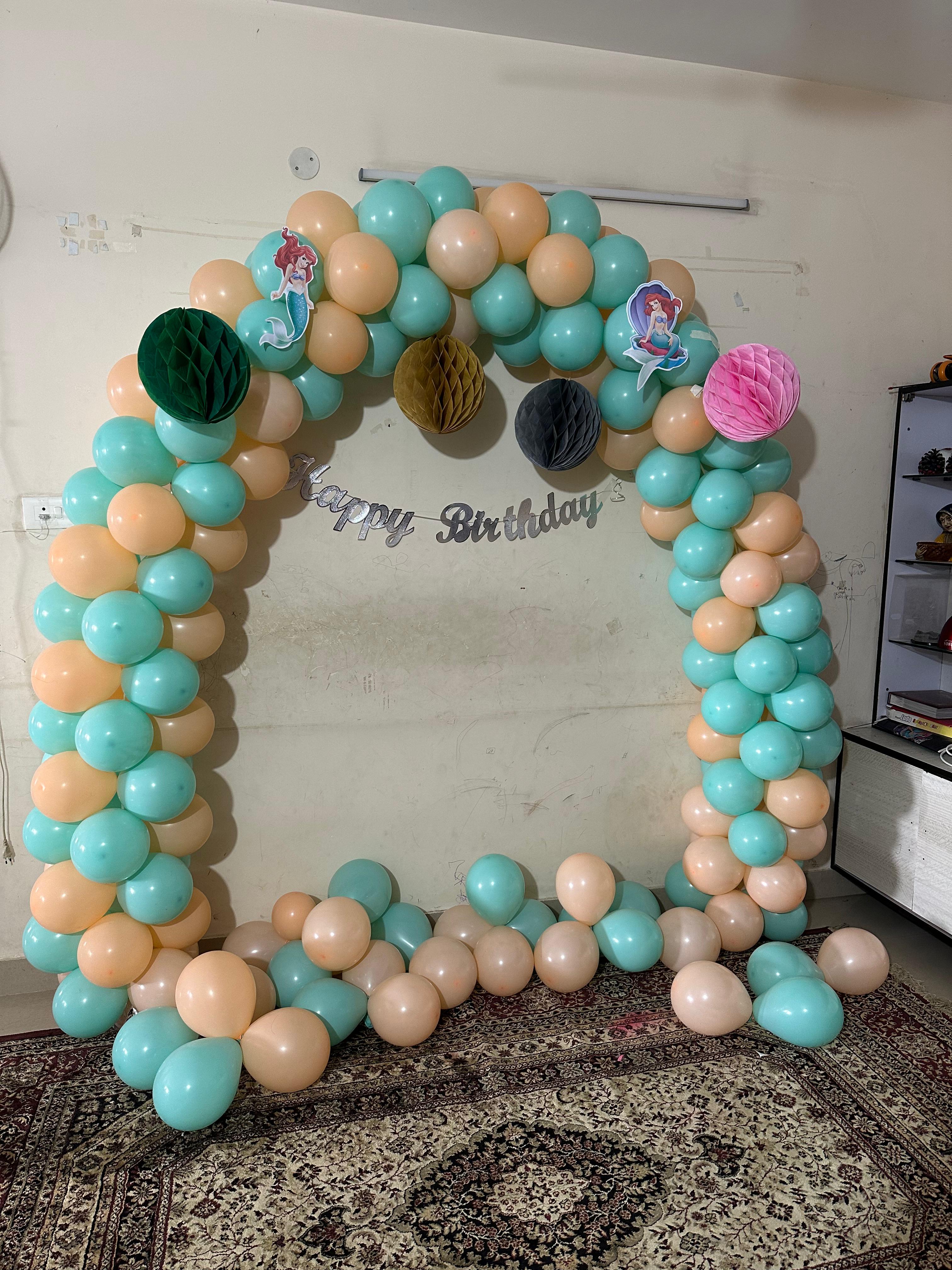 • Arch of 200 balloon (Peach, Turquoise (blue-green/aqua))