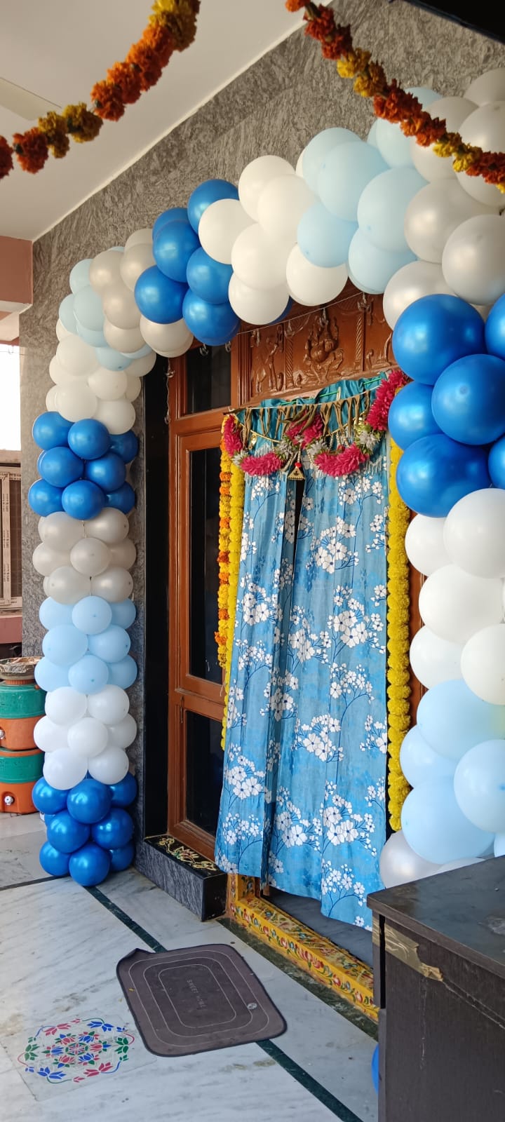 • Arch of 160 balloons (Pastel Blue, Latex Red, Pastel Yellow, Latex)