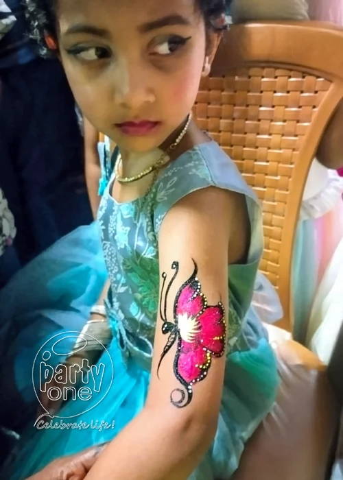 A tattoo artist for birthday party will be the best option as this entire art form lets them wander into the world of imagination. Tattoo for birthdays will leave all the kids, especially the birthday boy, feel special in their own accord. Kids getting Tattoos for Birthday will also give them some time to think about what they associate themselves with because that is what will be drawn on their skin. They can just sit, command, and enjoy their new design and jam up with their besties. One more concern of most parents about having a birthday party tattoo artist is how safe will it be for the kids. PartyOne.in promises that they only need to worry about what designs they’re going to get and not about the materials, because we like to take care of our customers and therefore, only child friendly materials are used, which can be instantly removed upon the wish of the child as well as parents. We have found great tattoo artists across goa to give you and your children a memorable birthday party.