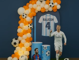 White and Orange Football Theme Decoration - Goa
