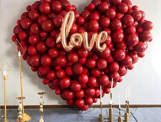 • 300-350 Large Heart-Shaped Balloon Backdrop (Deep Red/Burgundy Matte Finish)