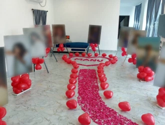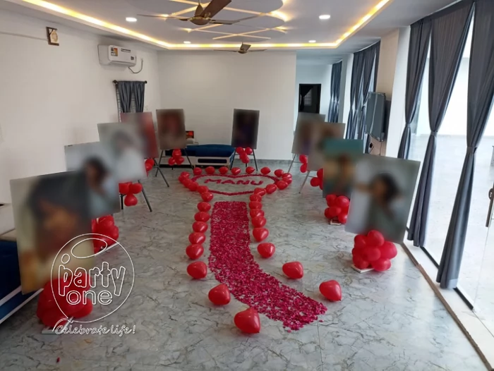 Surprise Photo Balloon Decor with Rose Petal Path - Gurgaon