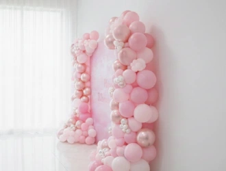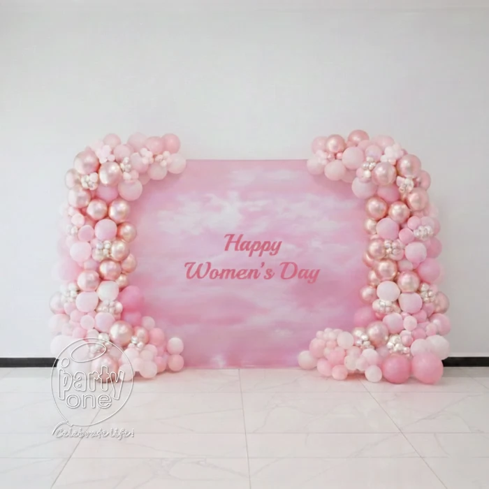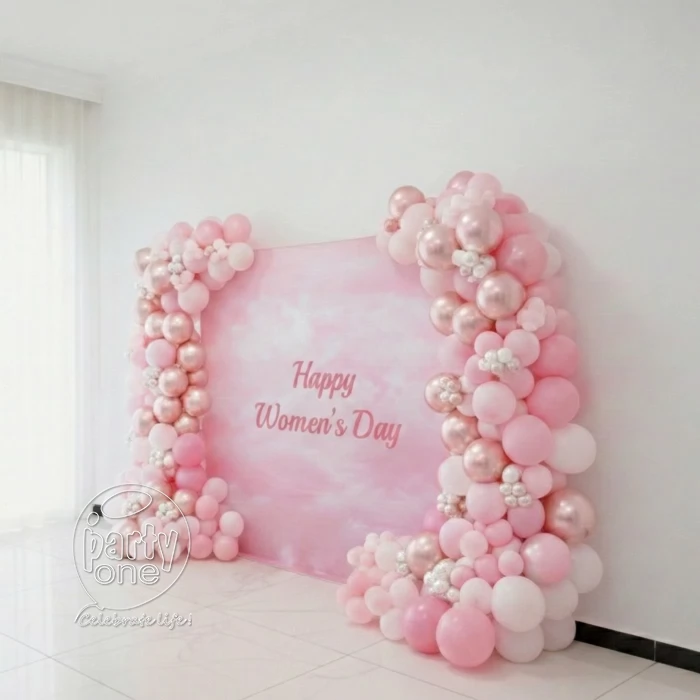 Pink Theme Womens Day Balloon Backdrop Decor - Gurgaon
