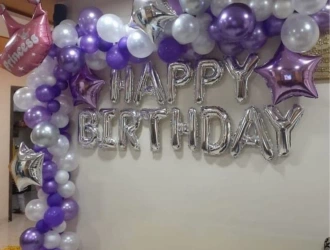 • Looking to celebrate in style? Our PartyOnes’ Purple and Silver Theme Birthday Decoration in Gurgaon – it's a party in a box! Our lovely L-shaped balloon arch will be the center of attention on your big day. Imagine how happy your guests will be when they walk into the room and see 150 purple and silver balloons. There's more! We've added four lovely silver star balloons that will shine and sparkle and add a touch of joy to your party. And a birthday wouldn't be complete without a big "Happy Birthday" sign, right? Our silver balloons make it clear that it's time to party! The icing on the cake? A beautiful Princess foil balloon that will make the girl on her birthday feel like a princess. With it, the center of a magical party would look divine! Any room can feel like a happy place with these beautiful decorations. An event and a funny purple and silver show are happening. Celebration your birthday in style while you still can. To celebrate your birthday, get ready to dress in purple and silver.