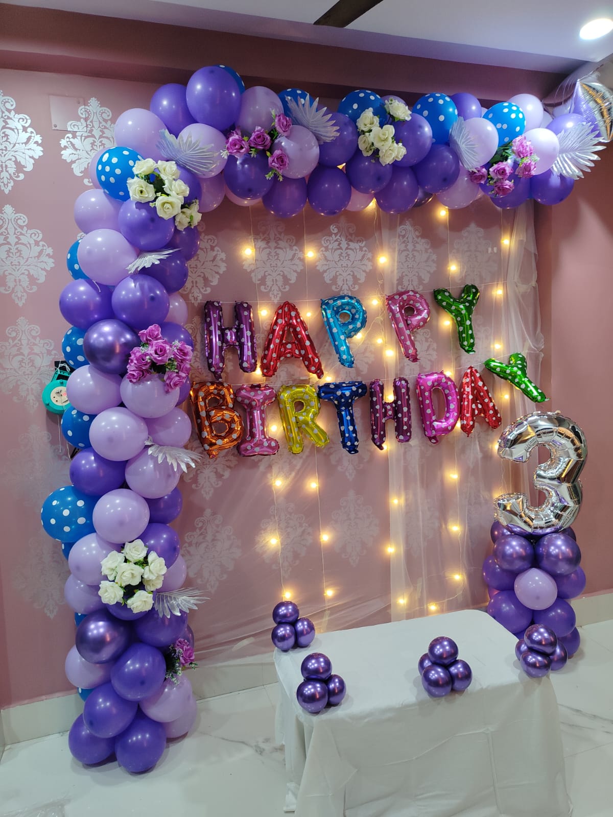 Tips for Balloon Decoration for Birthday Party. If you're planning for your birthday or for you kid, here are tips and ideas you can make your birthday decoration at home even more attractive. Whether you're planning a kid's birthday or an adult party. Choosing Pastel balloon decoration and soft colours makes the event more colourful. Using colours like peach, mint green, lavender, baby pink are perfect for birthday balloon decoration. Metallic or chrome balloons are good if you're looking for premium decoration, using colours like gold, rose, silver and deep blue give your birthday party a premium feel with good looking mainly when it is paired with candles and LED lights. If you're more into sustainable birthday decoration, then go for eco-friendly balloon decoration or you can pair them with reusable frames, fabric drapes, ring stands for a beautiful and planet-friendly celebration.