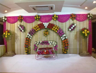Since the naming ceremony is special to both the baby and the parents, we provide many new and unique ideas to make it memorable. All our decor themes differ, but flowers are typical. We order various beautiful, fresh florals to adorn the venue and offer customizations per our client's needs. PartyOnes experts pride themselves on their attention to detail and exceptional service. Naming ceremony decorators work closely with the clients to create a theme that perfectly captures their vision and exceeds their expectations. Our professional namkaran ceremony decorators take care of everything, from venue setup to cleanup and sending invitations, so you can relax on a special day and make memories that will last a lifetime. We set up a huge backdrop for the new parents to make them the center of attraction and show off all the decoration work. If you want, we will provide draping for the screen and two pillars to beautify the venue! Parents also bring home everything on display, including their baby's name and a wooden cradle decorated with flowers at their cradle ceremony. Whether you celebrate your naam karan indoors or outdoors, in broad daylight or evening, we provide LED light arrangements. Our starting package is suitable for decorating a room. But if the event venue is huge, we will add more flowers and balloons. However, their price will be different. You can talk to our customer support team for more details.