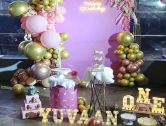 PartyOne is one of the best birthday event organizers. We do balloon decorations, stage decorations, car entry for kids, engaging activities like magic performance, game host, caricature, hair beading, 360 camera booth, live cartoon characters, mascots, and more. We provide live eateries like cotton candy, chocolate fountain, popcorn, etc. If you're planning for a budget-friendly celebration at home, then we can go with simple wall decoration at home, with a magician to engage the guests and family members. A chocolate fountain would be a go-to option for a budget-friendly setup. But if your budget is high and you're looking for a grand celebration, go with themed birthday decorations like jungle theme, Cocomelon theme, etc. Adding live cartoon characters that match the theme, with a juggler or tall man, can be the best option. Then adults' and kids' indoor activities would be the best option to engage the guests and kids. For eateries, adding popcorn, cotton candy, and chocolate fountain can be the best option. Lastly, a birthday photographer and videographer would be best to capture all the moments.