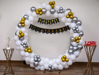 Celebrating 25 years of marriage is a significant milestone. Silver Jubilee anniversary decorations are usually with silver tones with white or light blue accents. Start the decoration whether it is a grand or simple anniversary decoration at home. If you're planning for a grand celebration, start with entrance decoration and you can also highlight your event with a special 25th anniversary stage decoration. To make this more unique, add all the important life moments from worst to best moments' photos on the stage. Don’t forget a cake with an anniversary topper wedding cake to make the occasion. At home, even a simple corner can be turned into a celebration place with candles, flowers, and hanging photo frames. Balloon decoration for 25th anniversary events is ideal for both indoor and outdoor decoration. If you prefer a professional touch, hiring PartyOne wedding anniversary decorators can customize your decoration based on the budget and the location. Your anniversary decoration should reflect the beauty and bond of couples.