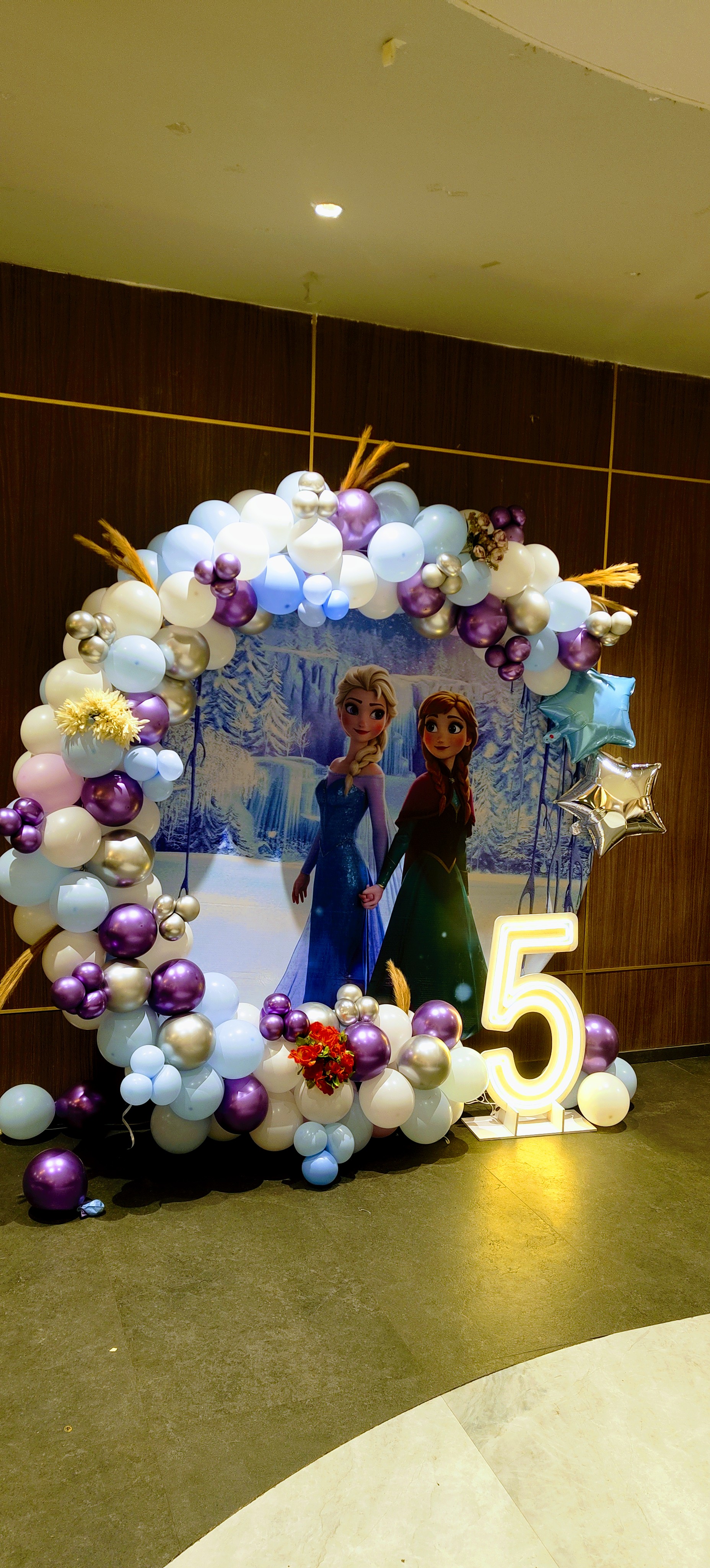 • Get ready to be in awe! With our PartyOne’s stunning Frozen Theme Birthday Decor in Indore, you can turn your event into a fanciful winter wonderland. Think of the joy on your child's face when they enter an icy magical world with about 200 colourful balloons that float in the air like snowflakes! This exquisite 6/6 ring display not only adds dimension but also creates the perfect photo opportunity to capture those precious moments. The two shimmering foil star balloons that sparkle above, adding a little gloss to this wintry display, are not to be missed. Give your imagination free rein and plan an extravagant birthday party that will wow everyone! PartyOne - For setting up the perfect ambience and letting you have a laid-back celebration and enjoy a lovely and memorable birthday bash and score that streak worthy snaps! For a smooth celebration, have a reliable power supply and allocate PartyOne balloon decorators 3 hours prior to the event for everything to come together.