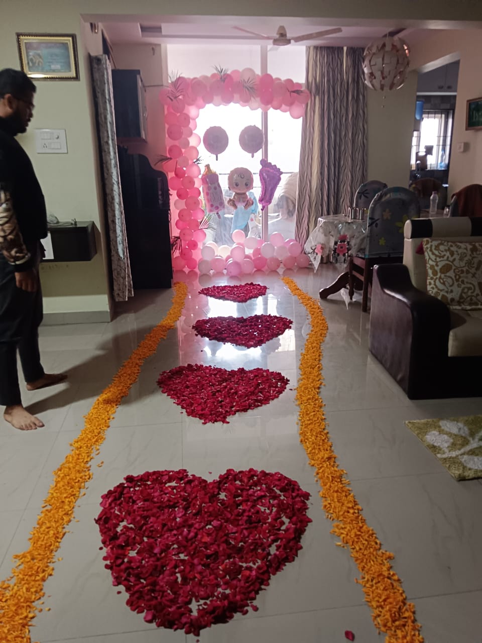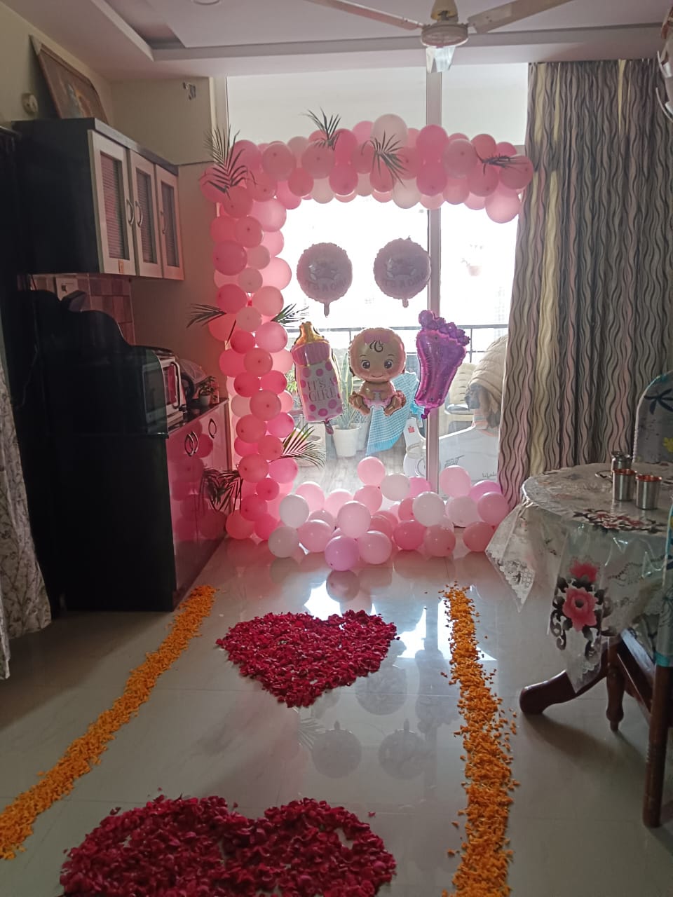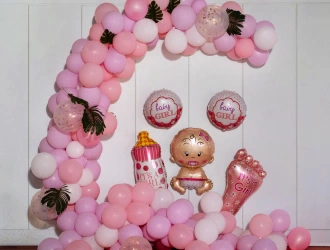 • Parenthood is a beautiful journey, and a girl child is the biggest blessing anyone could ever have. We at PartyOne welcome you to start and celebrate this beautiful journey with professional balloon decorators. Get our “Pink Half Arch Welcome Baby Decoration” in Jaipur for welcoming your girl child for the first time at home. This decoration can also be used in a small celebration for updating your social media about your baby, where you can stylishly introduce your baby to your followers. If you want a different celebration which defies general stereotypes, this decoration is perfect for you. It has beautiful baby pink and white balloon arch that make the environment vibrant and fun. The beautiful baby girl theme foil balloons and confetti balloons create a perfect backdrop for photos. So, use our decoration to surprise your wife or invite people to meet your child, happiness, fun, a lot of fun. Make your day memorable with us with just one click. For a smooth celebration, have a reliable power supply and allocate PartyOne balloon decorators 3 hours prior to the event for everything to come together.