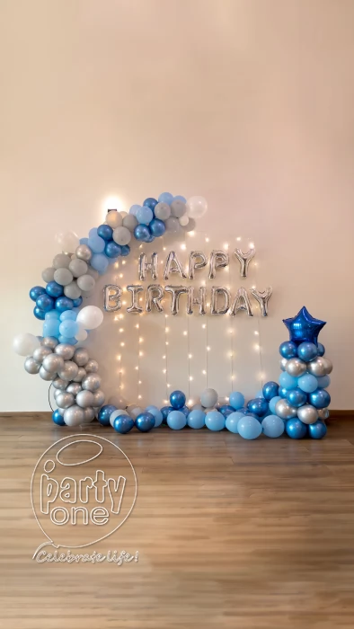 Silver Blue Birthday Decor with Perry Lights - Jaipur