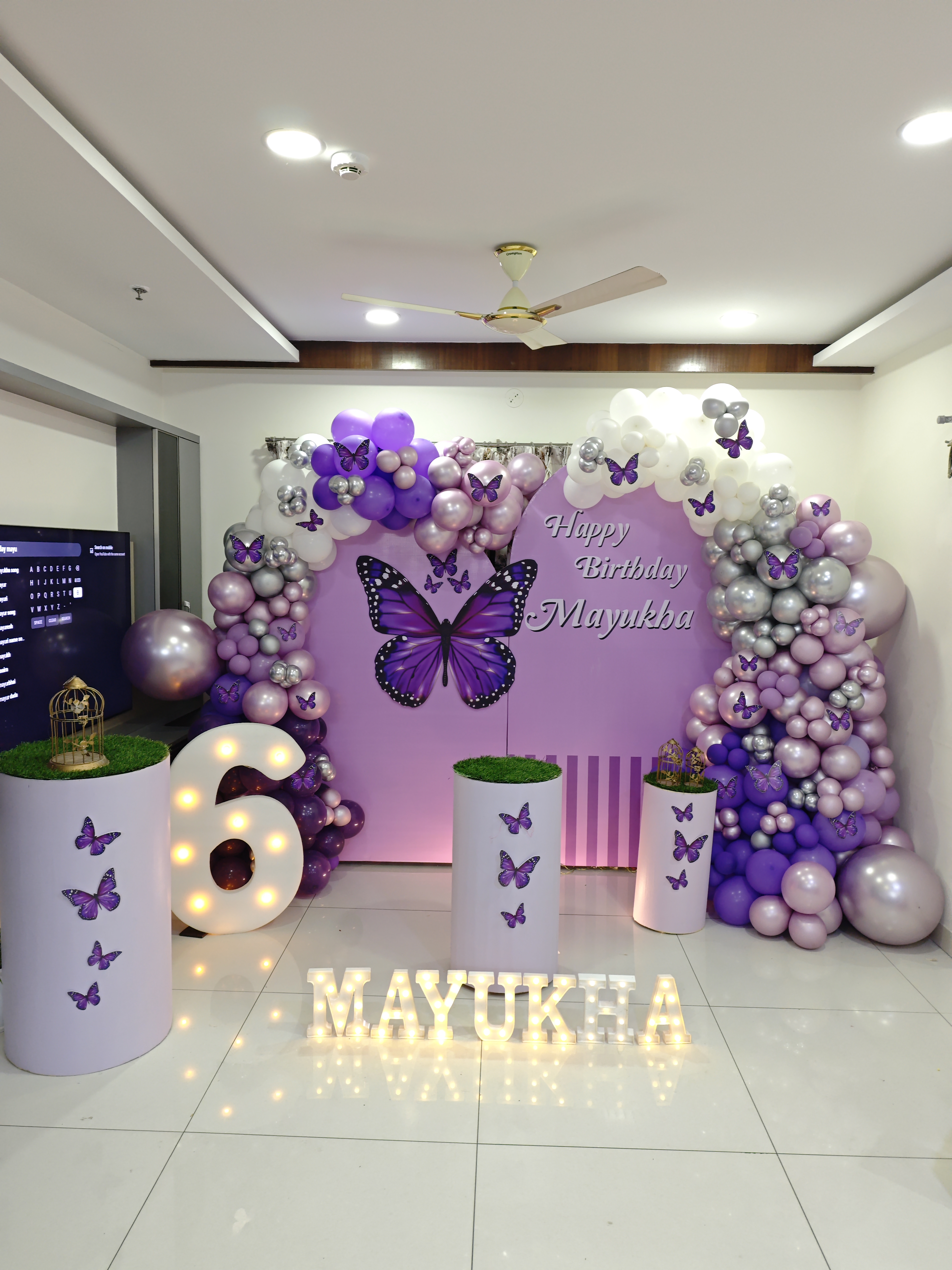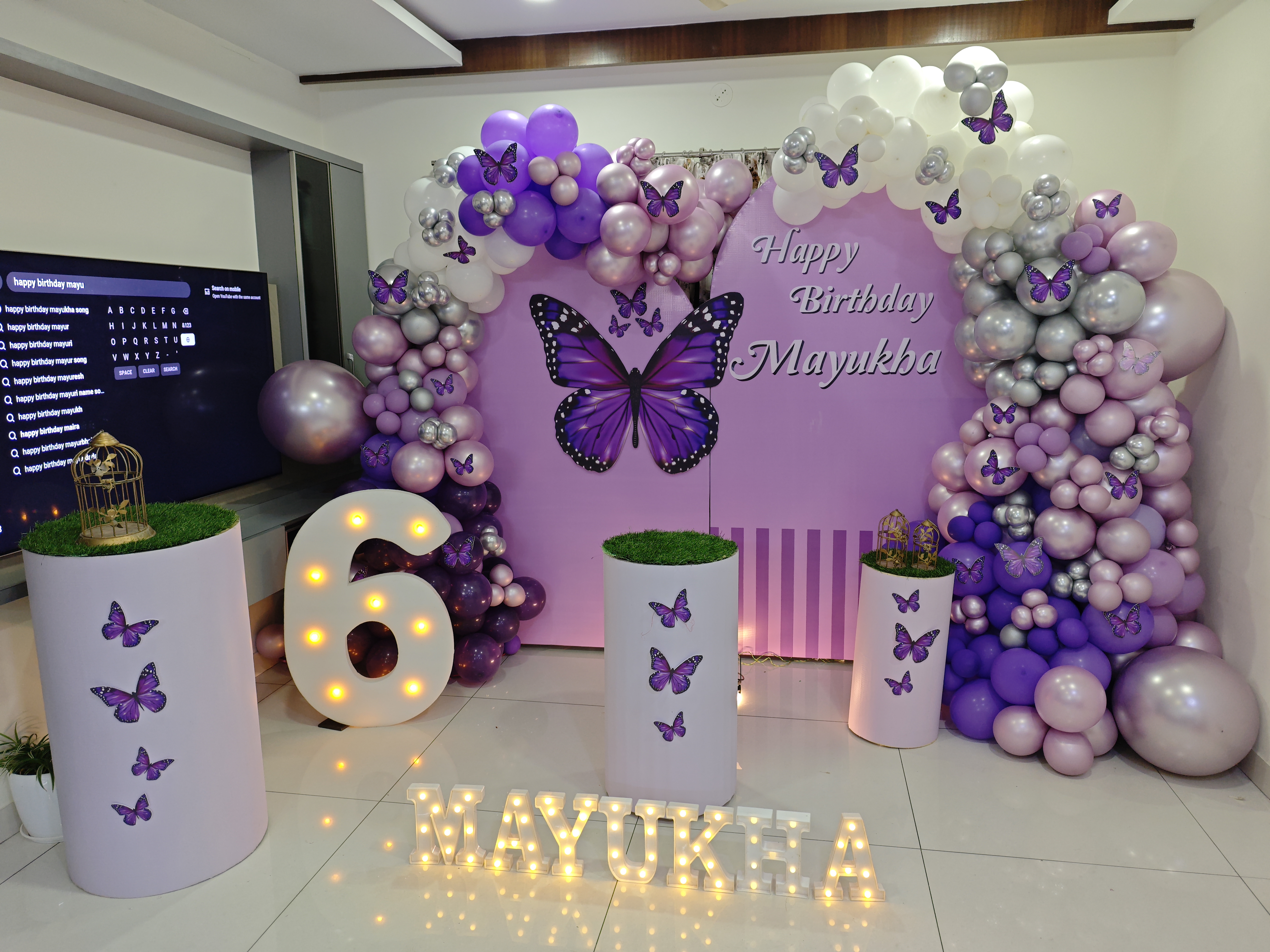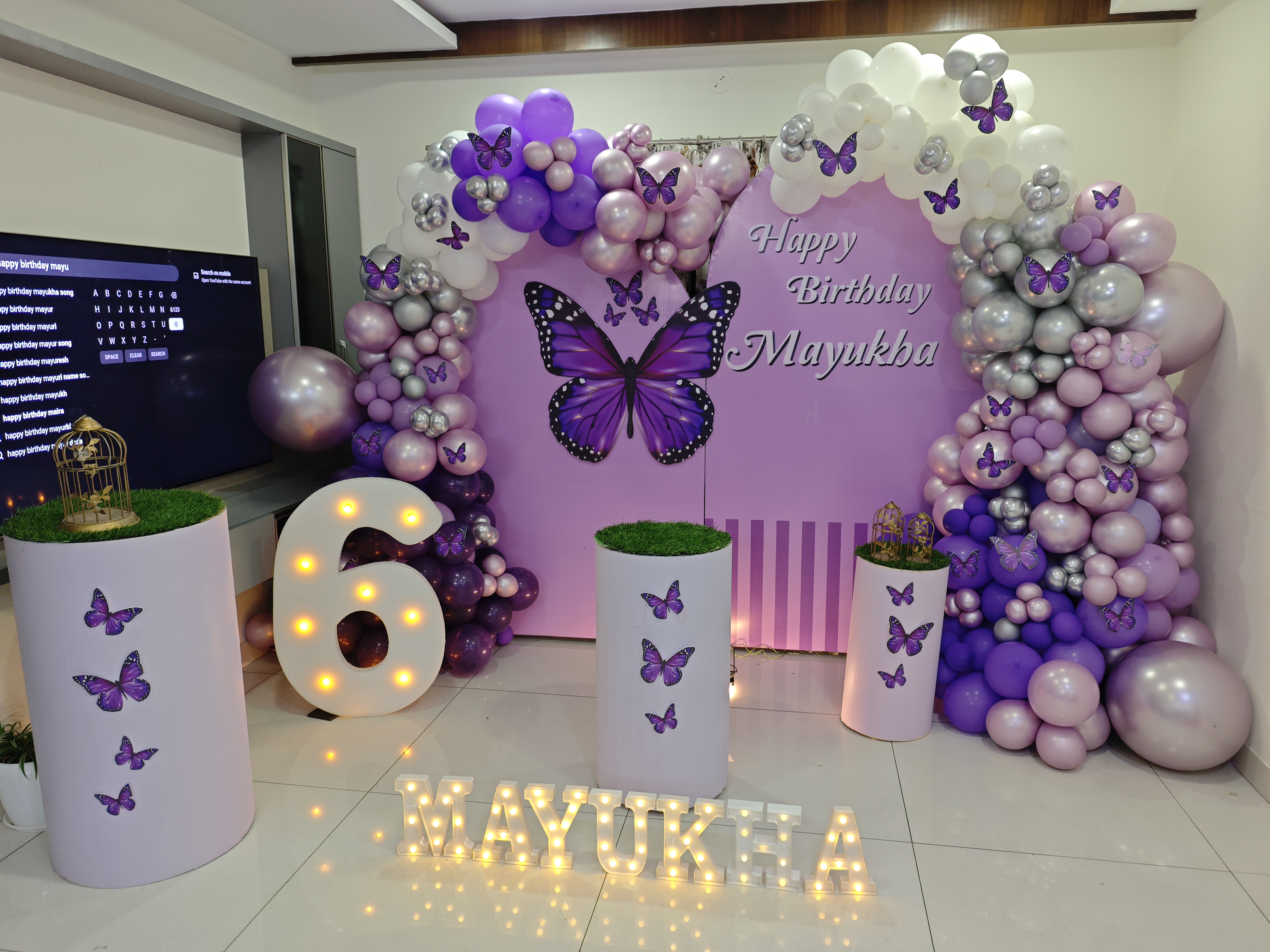 Lavender Butterfly Theme Balloon Decoration in Kanpur