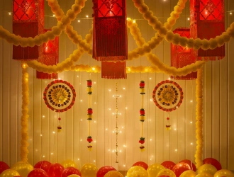 PartyOne specializes in providing beautiful festival decorations at home for various festivals, each designed to capture the occasion's unique spirit and cultural essence. Our extensive range of services ensures that every celebration is adorned with perfect decor, creating an enchanting atmosphere that enhances the festive experience. For Diwali, our diwali decorations at home include traditional elements like rangolis, diyas, and fairy lights that illuminate your space with warmth and positivity. Our team can draw intricate rangoli patterns and place diyas beautifully to create a mesmerizing effect. The addition of fairy lights enhances the festive ambiance, making your home or venue glow with joy. We have tricolor backdrops and thematic balloon arrangements for Republic Day, Independence Day, and other patriotic occasions. Navratri or Diwali decorations are characterized by vibrant colors, traditional motifs colors, and devotional themes that set the stage for energetic dandiya and garba nights. We can add a beautiful mandir (prayer altar) backdrop for families to perform daily pujas. Halloween is all about spooky fun, and our festival decorations at home are designed to deliver just that. We offer a range of props, such as themed balloon decor, eerie lighting setups, pumpkin decor, etc. Christmas or Diwali decorations at PartyOne are all about elegance and festivity. We provide beautifully decorated Christmas trees, festive balloon decoration at home, and cozy backdrops that reflect the joy of the season. New Year's Eve is another occasion that calls for spectacular festival decorations. We offer elegant balloon setups, champagne-themed props, sequined fabrics, and glittering backdrops that set the tone for a grand celebration.