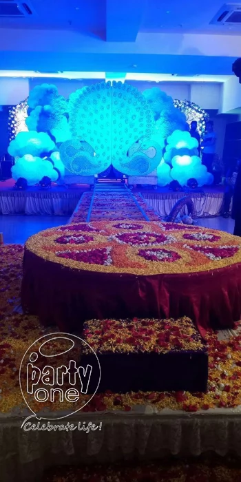 Every bride and groom want a beautifully decorated venue to celebrate their wedding. PartyOne offers various customizable themes and wedding decoration options that bring your vision to life. We make sure to decorate your wedding decorations and venue as unique as your bond. Whether you want a traditional-style wedding at your home, a beachside wedding, a garden wedding, or a grand ballroom celebration, we can do the wedding planning and decorate it according to your taste. At PartyOne, we offer various flower decoration packages depending on the venue size and your choice of flowers. We can decorate the venue with various flowers, such as roses, marigolds, jasmine, orchids, chrysanthemums, carnations, jasmine, tulips, peonies, sunflowers, lotus, and many more. We also offer wedding services with balloon decorations, including arches, garlands, etc. We use luxurious fabrics and elegant drapes to elevate the ambience of your venue. From lanterns and fairy lights to glass pieces, we have countless options to personalize your wedding decoration with enchanting decor pieces. From mesmerizing floral arrangements and grand drapes to centerpieces and customized lighting, we will create a visually captivating venue that awakens your guests. Our PartyOnes professional wedding planners understand that every couple is unique, and their wedding should reflect their individuality. It is a grand day for the soon-to-be-married couples, so they deserve a personalized and custom wedding services. PartyOne offers a broad range of themes and wedding decorations to choose from. In addition, you can talk to our designers to create a personalized theme that reflects the couple's likes and personalities.