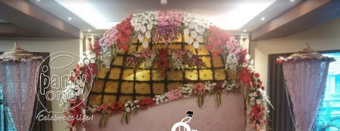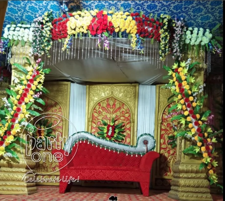 Every bride and groom want a beautifully decorated venue to celebrate their wedding. PartyOne offers various customizable themes and wedding decoration options that bring your vision to life. We make sure to decorate your wedding decorations and venue as unique as your bond. Whether you want a traditional-style wedding at your home, a beachside wedding, a garden wedding, or a grand ballroom celebration, we can do the wedding planning and decorate it according to your taste. At PartyOne, we offer various flower decoration packages depending on the venue size and your choice of flowers. We can decorate the venue with various flowers, such as roses, marigolds, jasmine, orchids, chrysanthemums, carnations, jasmine, tulips, peonies, sunflowers, lotus, and many more. We also offer wedding services with balloon decorations, including arches, garlands, etc. We use luxurious fabrics and elegant drapes to elevate the ambience of your venue. From lanterns and fairy lights to glass pieces, we have countless options to personalize your wedding decoration with enchanting decor pieces. From mesmerizing floral arrangements and grand drapes to centerpieces and customized lighting, we will create a visually captivating venue that awakens your guests. Our PartyOnes professional wedding planners understand that every couple is unique, and their wedding should reflect their individuality. It is a grand day for the soon-to-be-married couples, so they deserve a personalized and custom wedding services. PartyOne offers a broad range of themes and wedding decorations to choose from. In addition, you can talk to our designers to create a personalized theme that reflects the couple's likes and personalities.