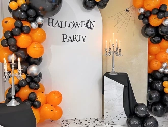 • Arch of 200-250 Halloween theme Balloons (Chrome Black, Chrome Silver and Chrome Orange)