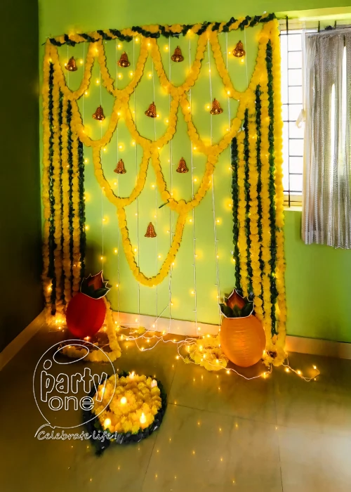 Festivals are not only dates on a calendar but also happy celebrations with traditions. Festival decorations can enhance the celebratory atmosphere of any event. Apart from being attractive ornamental elements, they symbolize the essence and spirit of the occasion, creating a vibrant and festive environment that brings families together. Festive decorations at home can convert any space into a visually appealing event. The magic of festival decorations at home lies in their ability to evoke emotions, set the mood, and highlight the cultural significance of the event. For instance, the intricate patterns of rangoli during Diwali add beauty and signify good fortune and prosperity. Similarly, the colorful flower garlands and backdrops during Navratri enhance the devotional fervor, making the celebration more immersive. Home Decorations for festivals also serve as a medium to express creativity and tradition, reflecting the uniqueness of each festival. Festival decorations create a sense of anticipation and excitement, engaging guests and enhancing their experience. As Diwali decorations can also serve as conversation starters, helping people bond over shared cultural symbols and festive elements. During these festivals, families come together to perform poojas, and the presence of a pandit adds to the spiritual essence, making the rituals more meaningful. At PartyOne, we understand the significance of festival decorations at home and the joy they bring. We provide top-notch home decoration for puja services that elevate your celebrations, whether traditional festivals like Diwali or modern ones like Halloween. We offer a wide range of festival decoration options that cater to various festivals, ensuring that each celebration is adorned with the perfect blend of tradition and creativity.