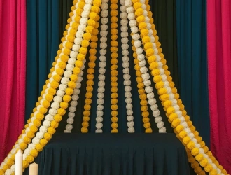• Hanging garlands of yellow and white marigold artificial flowers (canopy style)