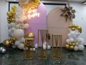 Planning something for a special day? Then surprise your loved one or kids with elegant birthday decoration that transforms any space into a celebration filled with joy, colours, balloons, and unforgettable moments. Whether it’s your child’s 1st birthday decoration, your partner’s milestone birthday celebration, or a surprise party celebration for your friend or parent, the right decoration can make them emotional and the moment magical. At PartyOne, we bring into their life those emotional and magical moments through birthday balloon decoration and customized solutions as per the need. From balloon arch, flower decor, ring decoration, birthday theme decoration to fairy LED lights, custom banners, and table arrangements. We ensure that we cover all the details to meet your requirements and budget. Our decoration services include customized decoration, pastel theme decoration, themed decorations, balloon garlands, and other surprises like live cartoon characters, magic show, 360 camera booths, and much more.Whether you’re hosting birthday decorations at home, in a hall, or outdoors — PartyOne ensures a stress-free and stunning decoration.