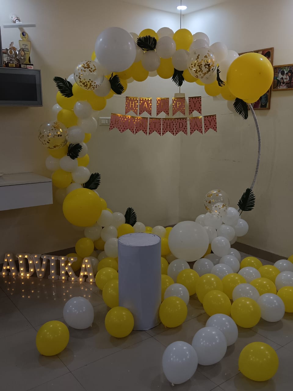 We had a surprise sunshine swirlly decor from partyone my friend was amazed with the decor and the setup. It was a nice experience and we loved it.