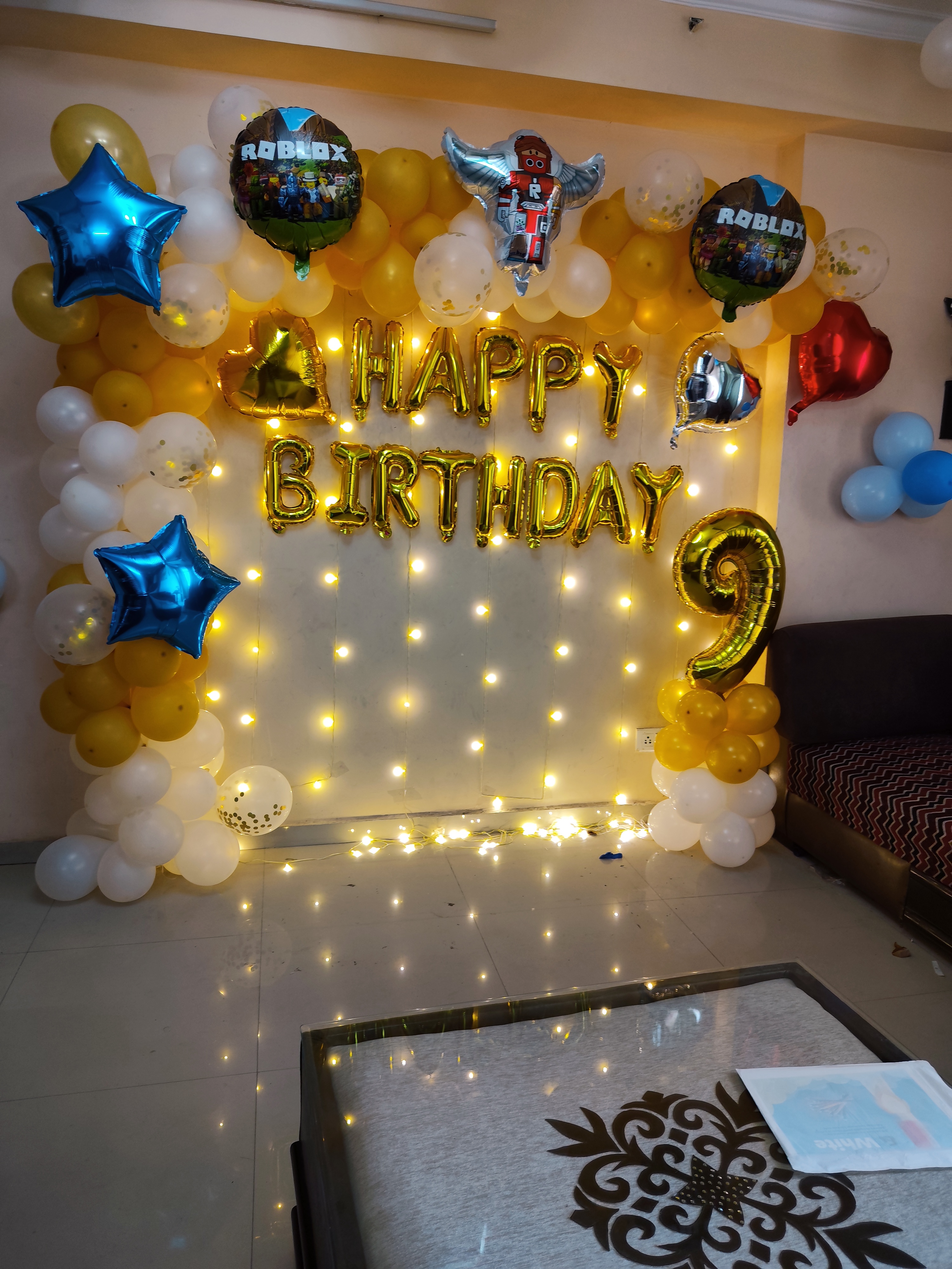 • Create an enchanting and heart-warming atmosphere when you welcome your little prince with our "White & Blue Welcome Baby Boy Decoration" in Mumbai. This amazing decoration kit has all you need to celebrate the arrival of your baby boy in style. There is a cute "Welcome Baby Boy" banner in elegant white and blue that can be hung across a wall; it comes with the birthday package. The banner is accompanied by good-quality latex balloons in matching white and blue, great for making balloon bouquets and whimsical balloon arches. We also have shiny blue star and moon cutouts which are perfect for hanging from the ceiling or scattering around the party area to add some sparkle. Apart from this decoration set, we also offer adorable table centerpieces that feature baby-themed designs with gentle blue hints to make your tablescape more special. For a memorable function as delightful as having another member in your family, you can use our "White & Blue Welcome Baby Boy Decor".