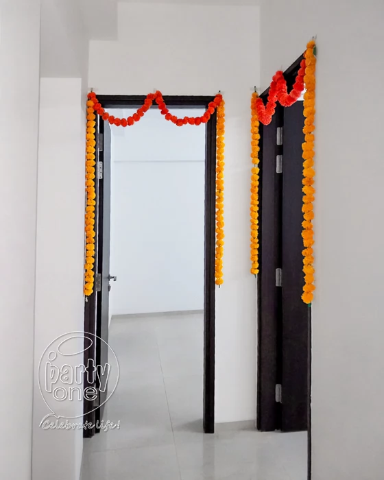 • 2 U shape Parada for main door with fresh flowers (Yellow and Orange combination)