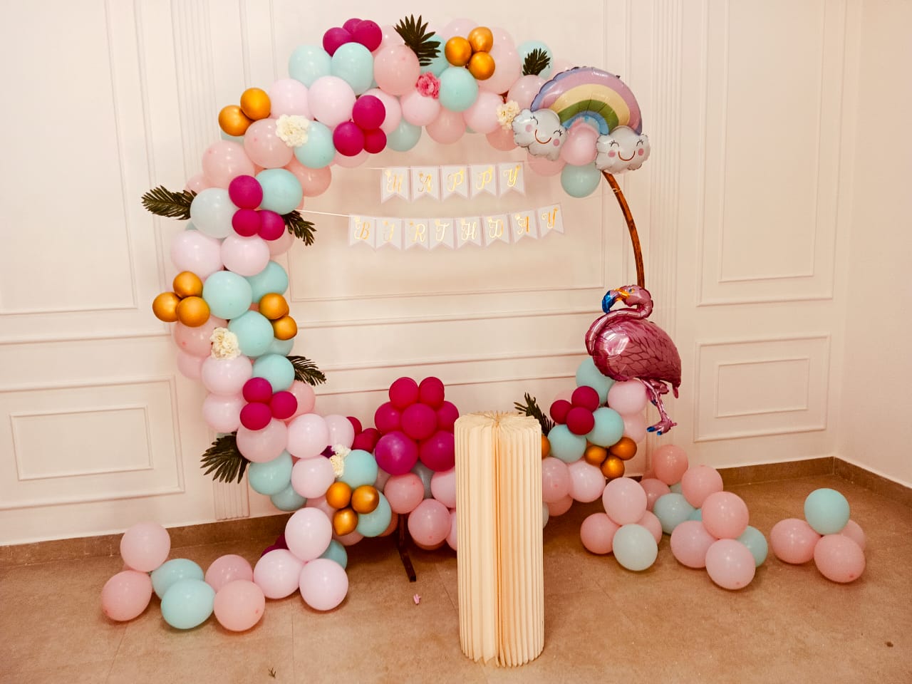 Tips for Balloon Decoration for Birthday Party. If you're planning for your birthday or for you kid, here are tips and ideas you can make your birthday decoration at home even more attractive. Whether you're planning a kid's birthday or an adult party. Choosing Pastel balloon decoration and soft colours makes the event more colourful. Using colours like peach, mint green, lavender, baby pink are perfect for birthday balloon decoration. Metallic or chrome balloons are good if you're looking for premium decoration, using colours like gold, rose, silver and deep blue give your birthday party a premium feel with good looking mainly when it is paired with candles and LED lights. If you're more into sustainable birthday decoration, then go for eco-friendly balloon decoration or you can pair them with reusable frames, fabric drapes, ring stands for a beautiful and planet-friendly celebration.