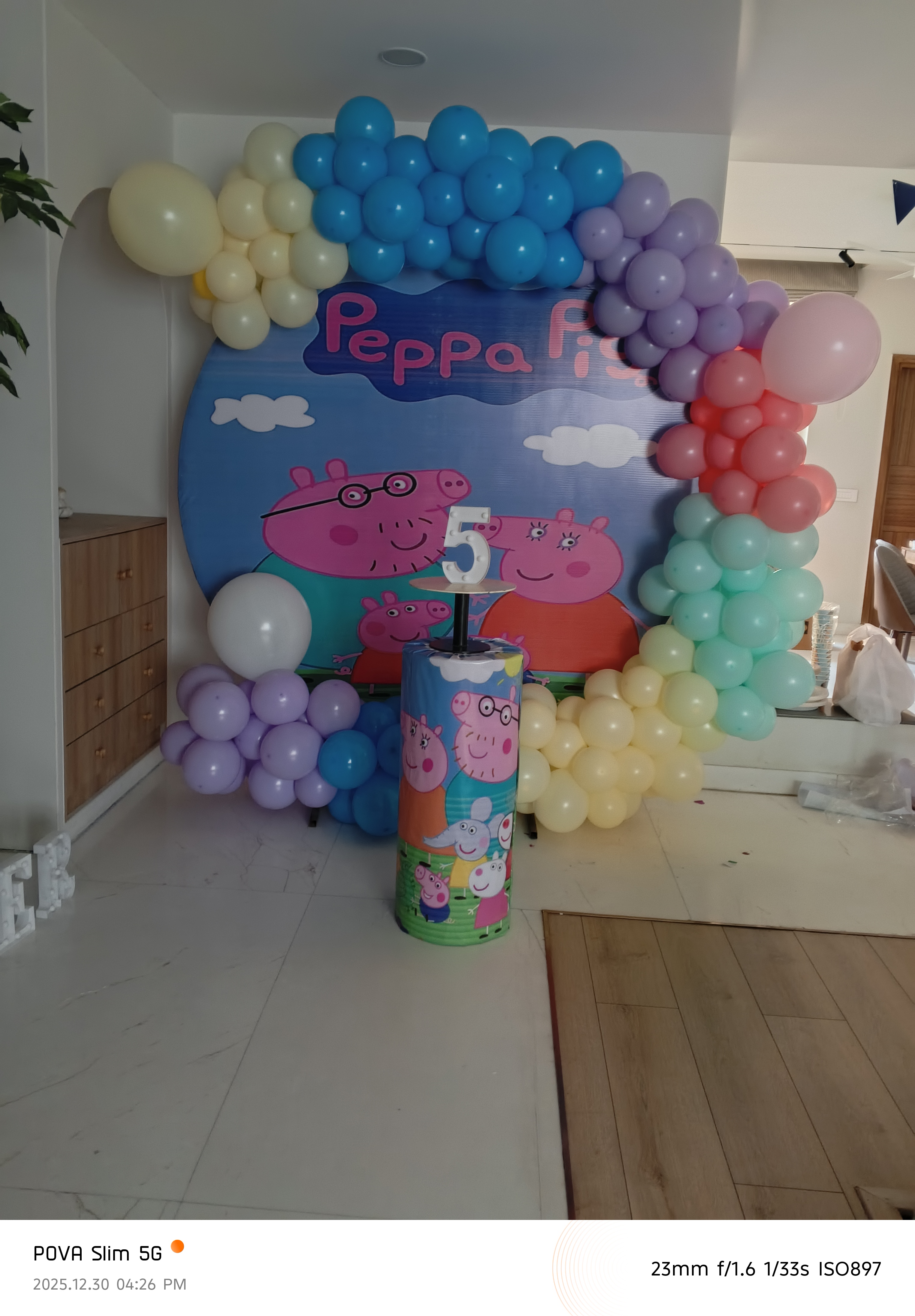 Rent Peppa Pig Theme 5th Birthday Ring Balloon Decor in Mysore