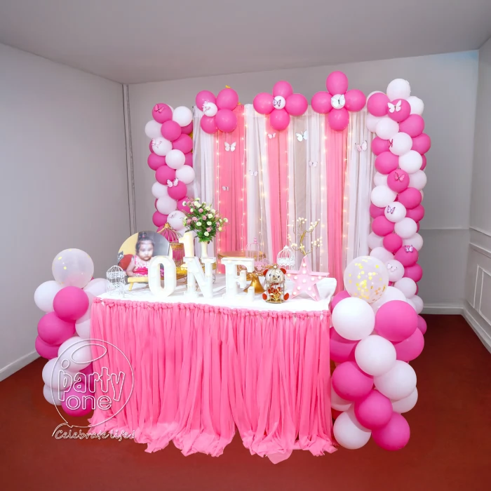 Planning for birthday celebrations at home, you don’t need to spend a lot to make it special. Here are some easy and affordable simple birthday decoration ideas at home that you can try. Balloon Decoration: Use colourful balloons like pastel colours, jungle theme colours, to decorate the wall with some foils. You can make a simple balloon arch or balloon bunch for the cake cutting area. Create a ready-made or DIY happy birthday banner to add a special love for your loved ones. Paper Decoration: Using different colour paper and make stars, hearts. Tape them on the wall or hang them from the ceiling for a better look. Add LED lights to the decoration to create a warm and beautiful environment. Make some DIY photo booth using balloon decoration, curtains, and some props — it is a great way to create memories. Here are some types of birthday decoration at home: birthday room decoration, terrace decoration, balcony decoration. Want hassle-free birthday decoration at home ? Contact PartyOne for easy, quick, and budget-friendly setup!