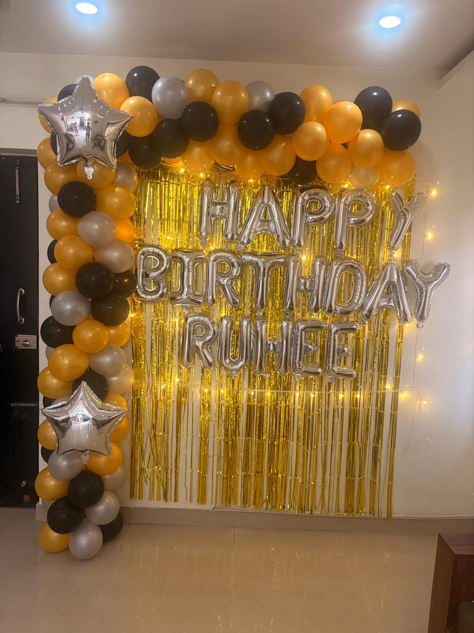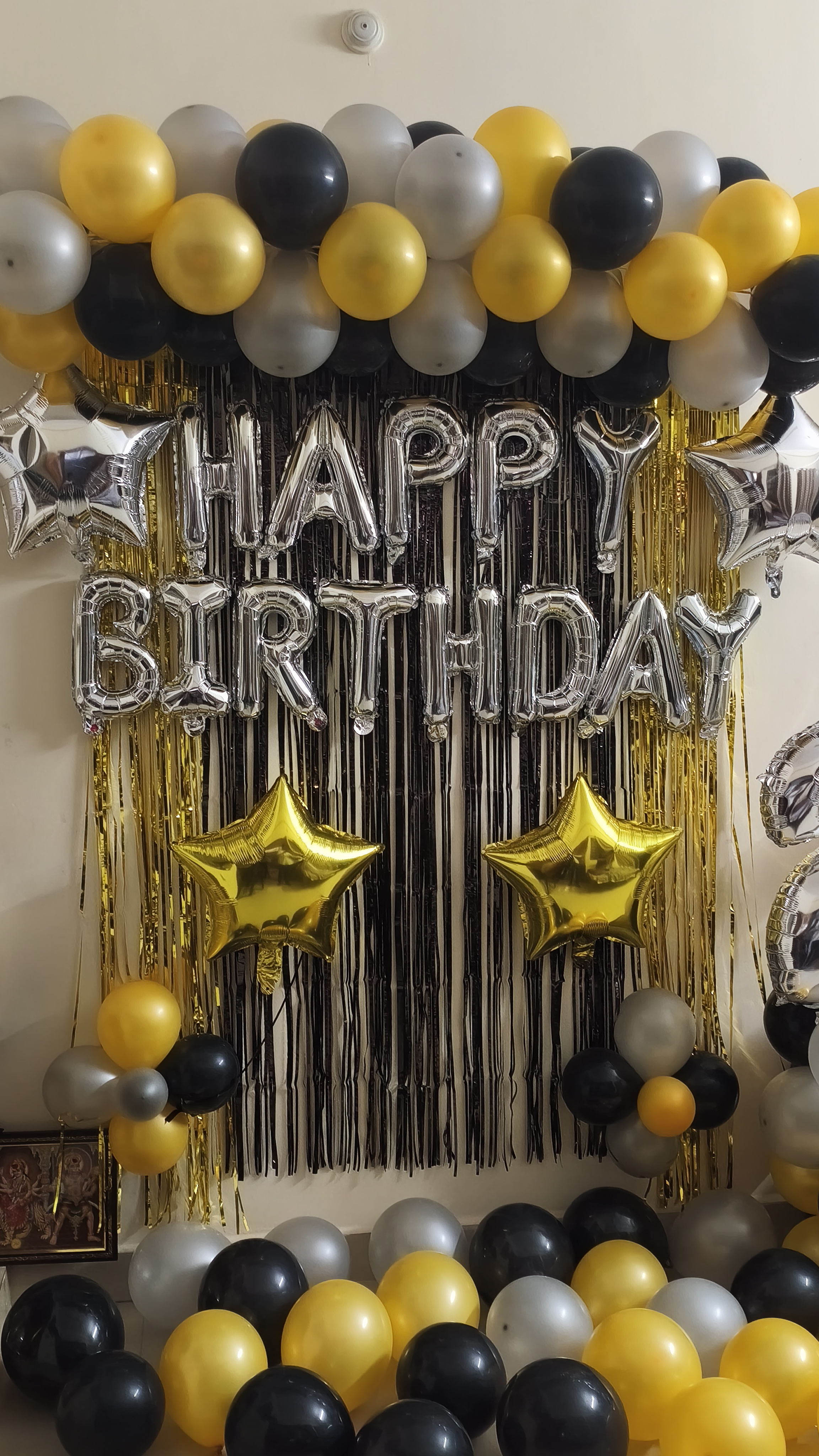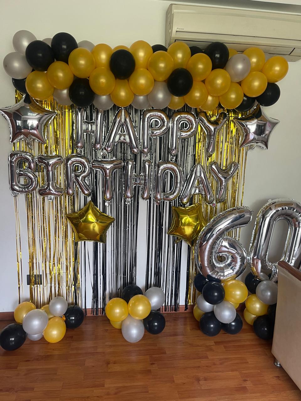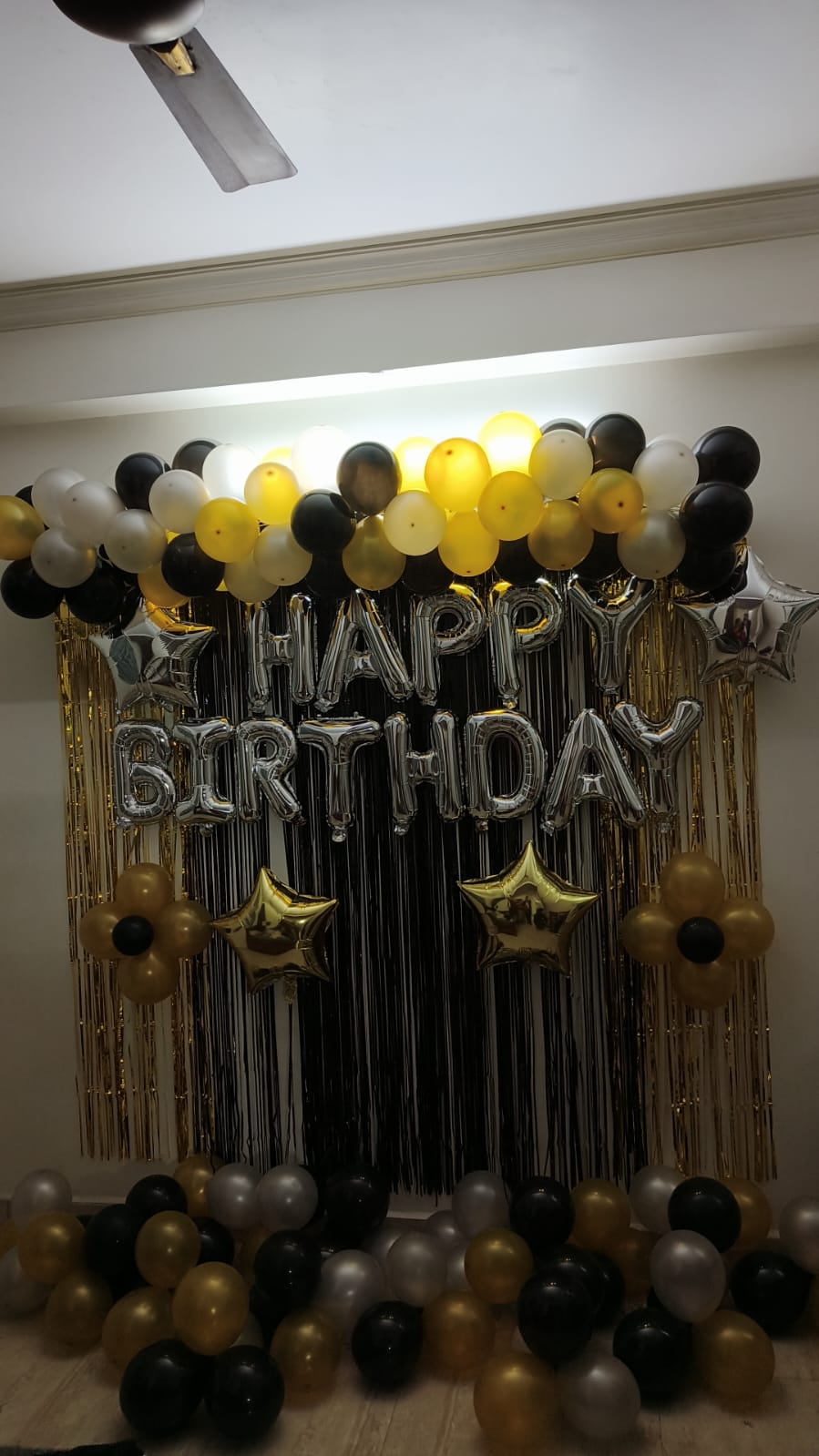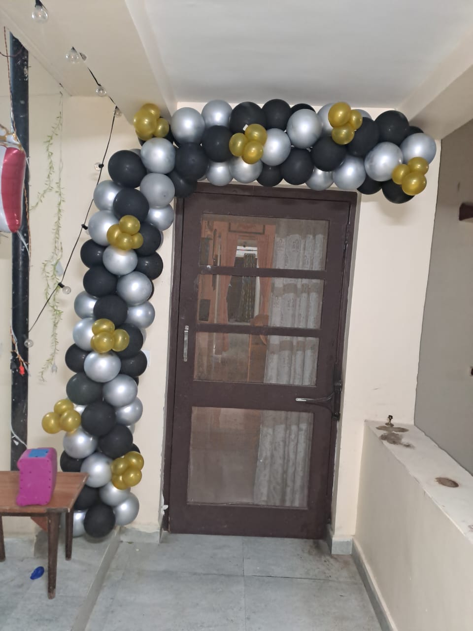 • Arch of 150 balloons (Black, Silver and Golden color)