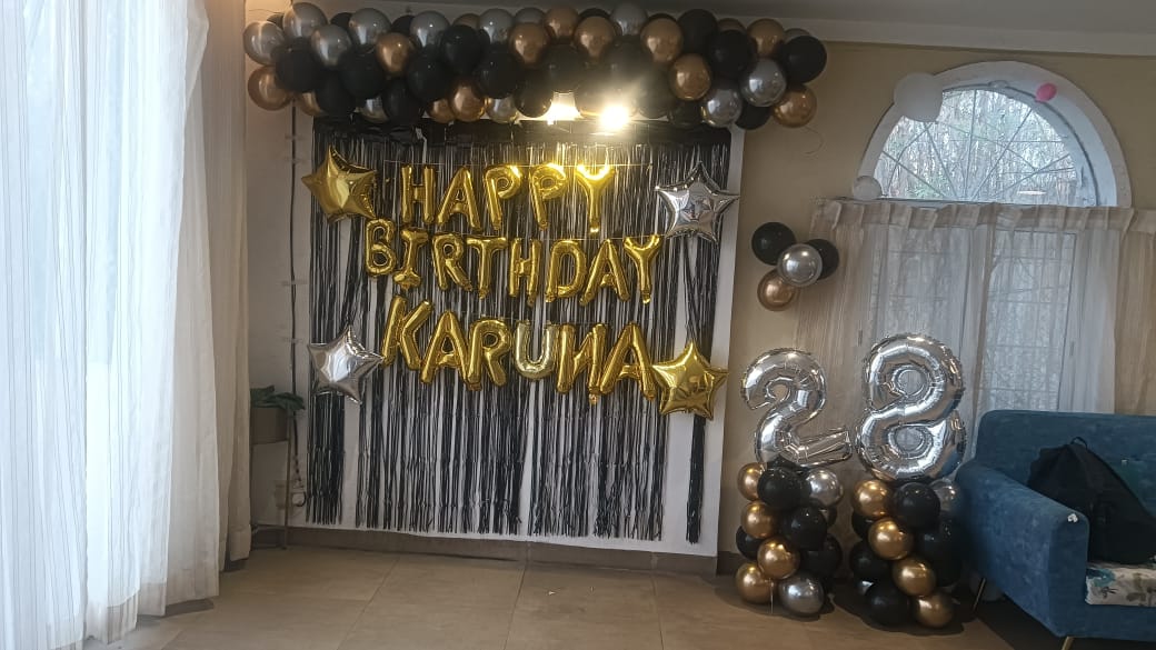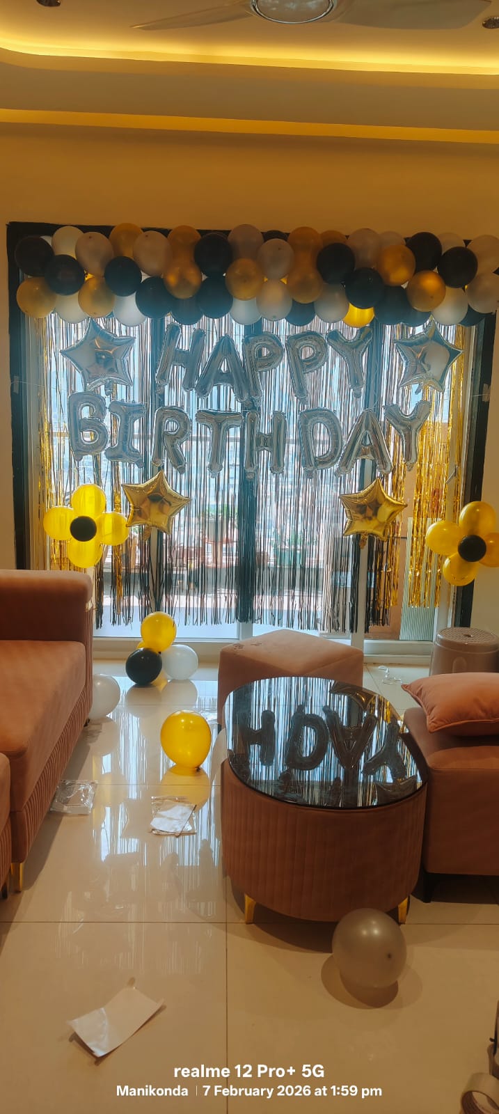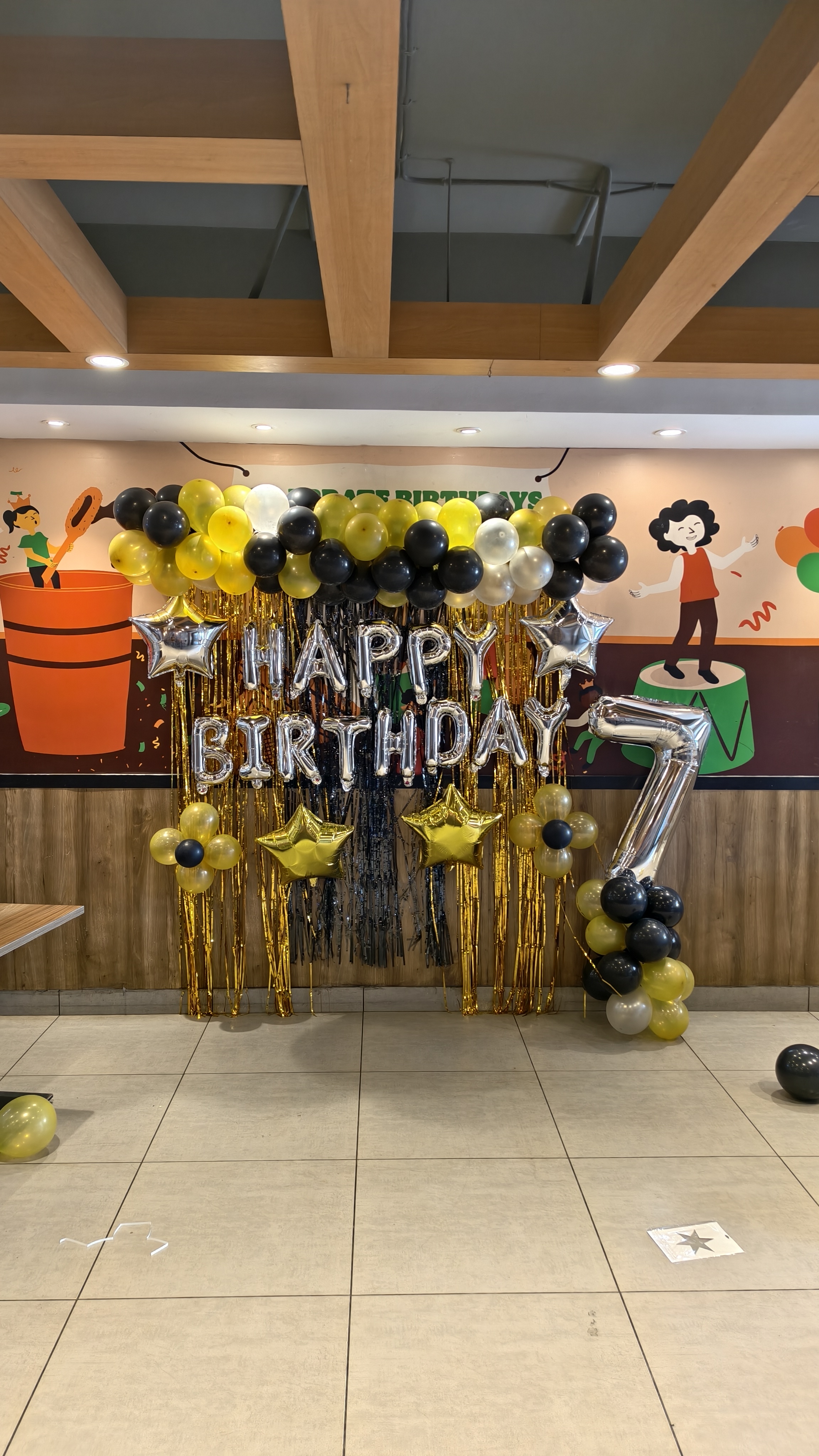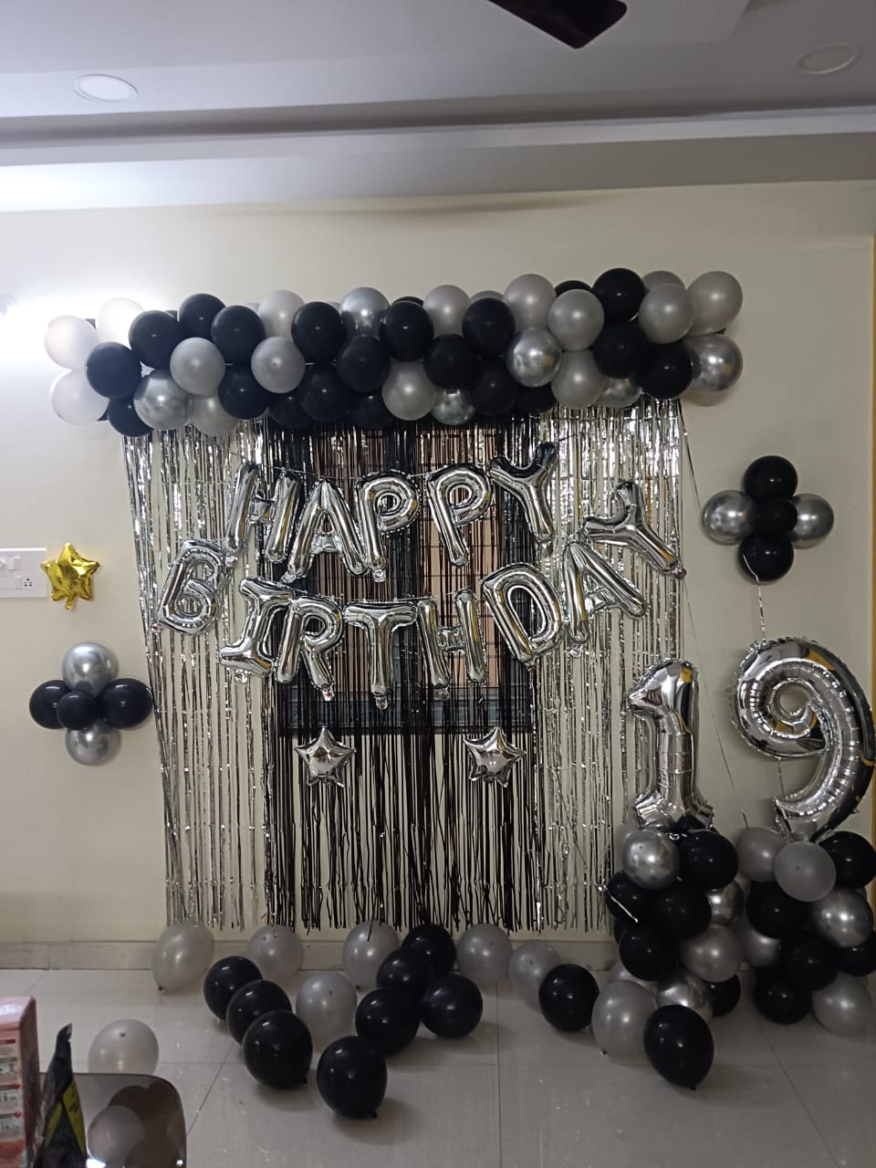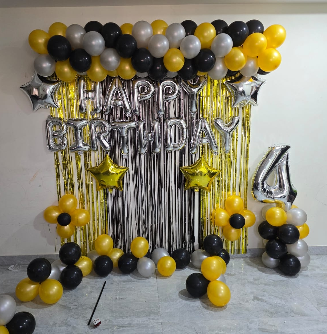• Arch of 150 balloons (Black, Silver and Golden color)