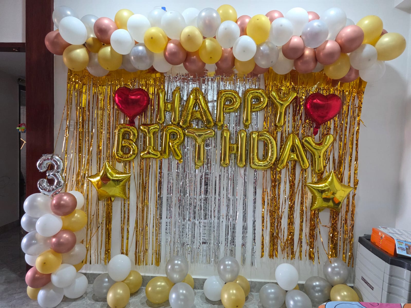 Planning for birthday celebrations at home, you don’t need to spend a lot to make it special. Here are some easy and affordable simple birthday decoration ideas at home that you can try. Balloon Decoration: Use colourful balloons like pastel colours, jungle theme colours, to decorate the wall with some foils. You can make a simple balloon arch or balloon bunch for the cake cutting area. Create a ready-made or DIY happy birthday banner to add a special love for your loved ones. Paper Decoration: Using different colour paper and make stars, hearts. Tape them on the wall or hang them from the ceiling for a better look. Add LED lights to the decoration to create a warm and beautiful environment. Make some DIY photo booth using balloon decoration, curtains, and some props — it is a great way to create memories. Here are some types of birthday decoration at home: birthday room decoration, terrace decoration, balcony decoration. Want hassle-free birthday decoration at home ? Contact PartyOne for easy, quick, and budget-friendly setup!
