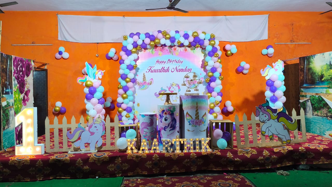 Looking for birthday decorations for kids? Whether it’s your child’s 1st birthday decoration, 2nd birthday, or even a 10th birthday celebration, the right decoration can make the day unforgettable. Every birthday should be celebrated with theme decoration or simple decoration at home can bring more joy to the child and the guests. From simple decoration to grand party hall balloon decoration, choosing the right birthday decoration for kids increases the interest and joy toward the day. Here are some unique decoration ideas: Balloon Arches Decoration, Themed Decoration, Jungle Theme Decoration, Terrace Decoration, Customized Decoration, Ring Decorations, etc. At PartyOne, we are experts at transforming your ideas into lovely decorations that complement your theme, fit your space, and bring happy memories to your child's special day. Contact us and make your kids birthday party a grant celebration