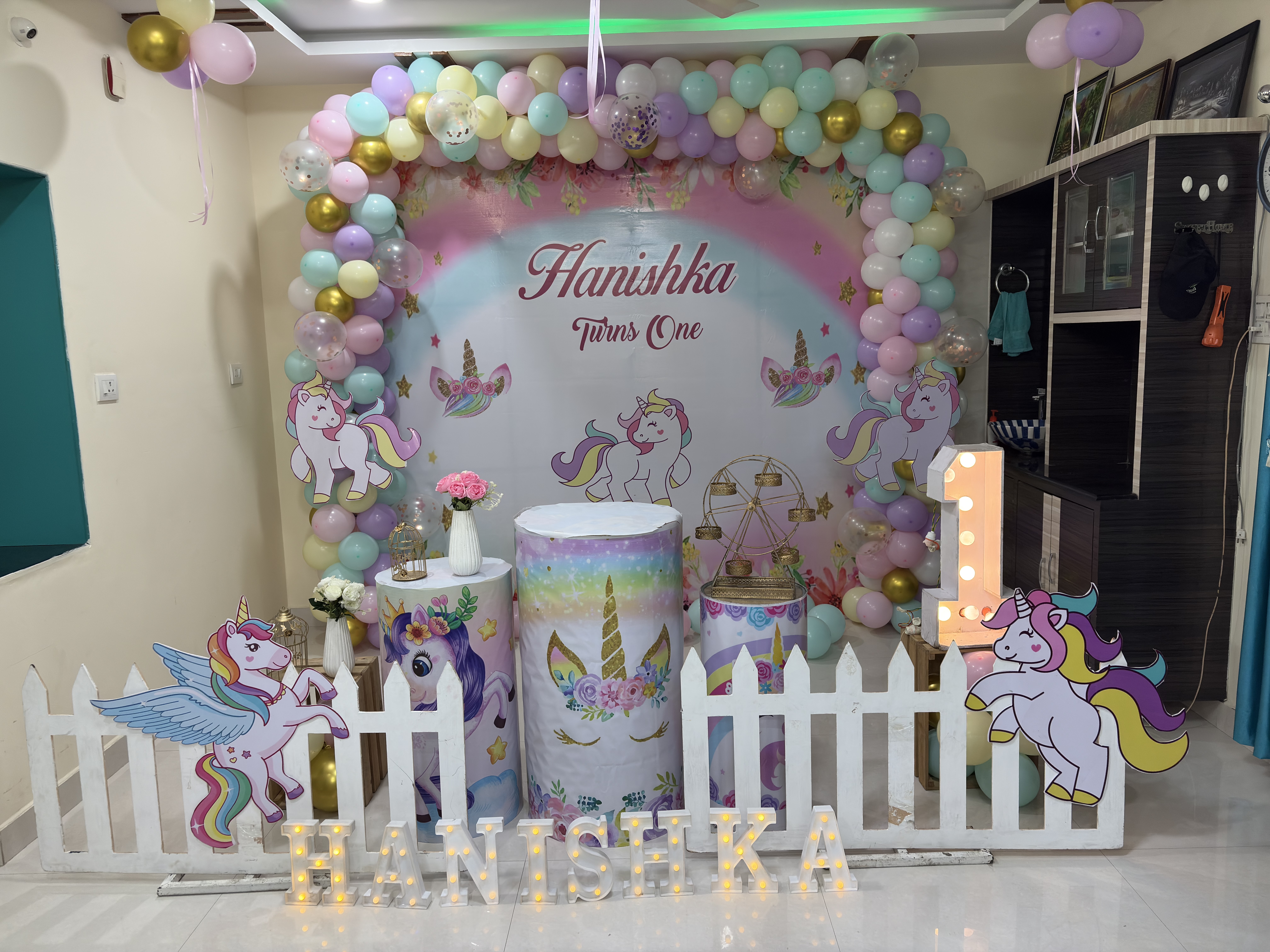 Suprise Unicon Theme Balloon Decor with Cutouts in Nagpur