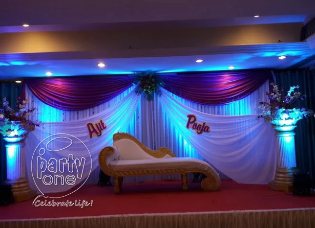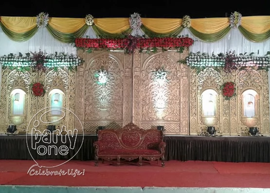 Every bride and groom want a beautifully decorated venue to celebrate their wedding. PartyOne offers various customizable themes and wedding decoration options that bring your vision to life. We make sure to decorate your wedding decorations and venue as unique as your bond. Whether you want a traditional-style wedding at your home, a beachside wedding, a garden wedding, or a grand ballroom celebration, we can do the wedding planning and decorate it according to your taste. At PartyOne, we offer various flower decoration packages depending on the venue size and your choice of flowers. We can decorate the venue with various flowers, such as roses, marigolds, jasmine, orchids, chrysanthemums, carnations, jasmine, tulips, peonies, sunflowers, lotus, and many more. We also offer wedding services with balloon decorations, including arches, garlands, etc. We use luxurious fabrics and elegant drapes to elevate the ambience of your venue. From lanterns and fairy lights to glass pieces, we have countless options to personalize your wedding decoration with enchanting decor pieces. From mesmerizing floral arrangements and grand drapes to centerpieces and customized lighting, we will create a visually captivating venue that awakens your guests. Our PartyOnes professional wedding planners understand that every couple is unique, and their wedding should reflect their individuality. It is a grand day for the soon-to-be-married couples, so they deserve a personalized and custom wedding services. PartyOne offers a broad range of themes and wedding decorations to choose from. In addition, you can talk to our designers to create a personalized theme that reflects the couple's likes and personalities.