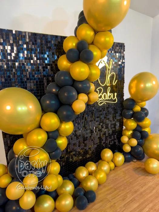 • Balloon arch of 200 balloons (Gold chrome and Black color)